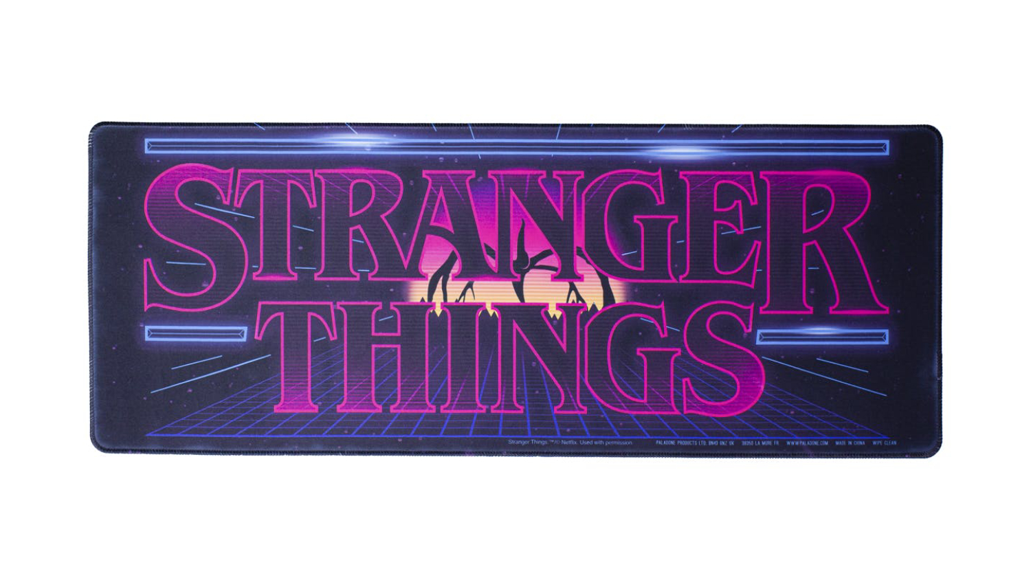 Boasting an iconic retro style, the Paladone Stranger Things Logo Desk Mat will add a touch of nostalgia to your desktop or office space! This desk mat is perfect for all Stranger Things fans, as it showcases an 80’s arcade machine style and the Mind Flayer “boss” in the background. In addition, this Stranger Things Logo Desk Mat is crafted with a 30cm x 80cm size to fit seamlessly into your work area.