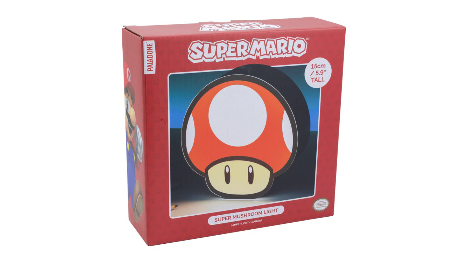 Level up your gaming den with the Paladone Super Mario Mushroom Box Light! This iconic light brings the nostalgia of gaming to life, featuring the classic Super Mario Mushroom Box that gamers know and love. With its retro and quirky design, this box light serves as both a stylish decoration and a homage to the gaming world.