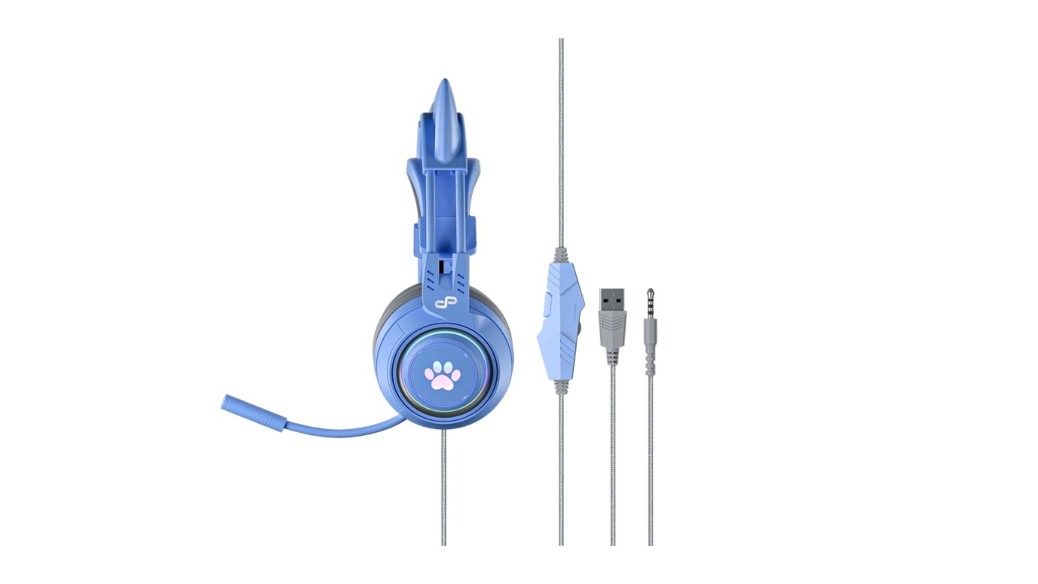 Powerplay Cat RGB Gaming Headset with Removable Ears - Blue