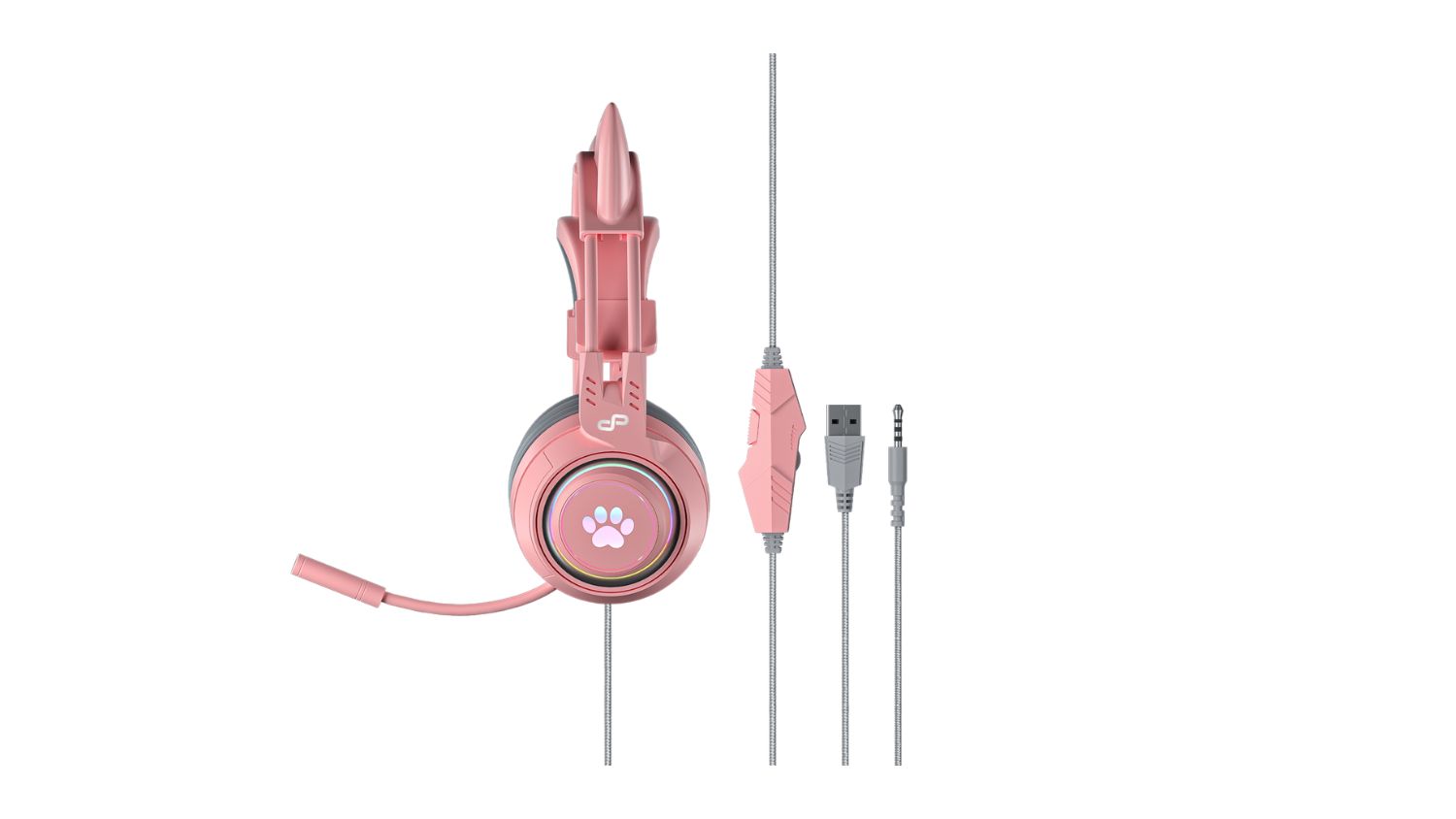 Powerplay Cat RGB Gaming Headset with Removable Ears - Pink