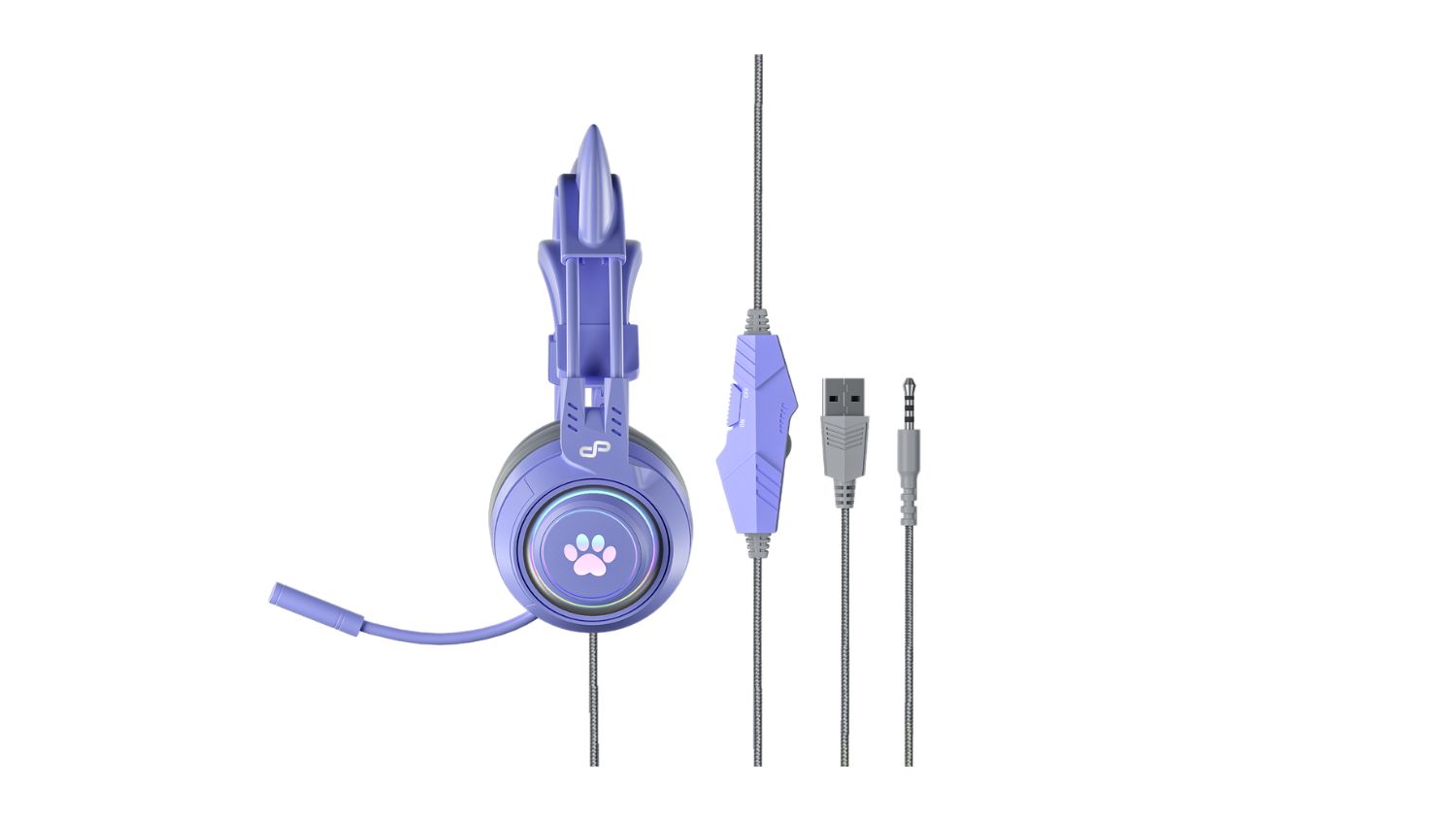 Powerplay Cat RGB Gaming Headset with Removable Ears - Purple