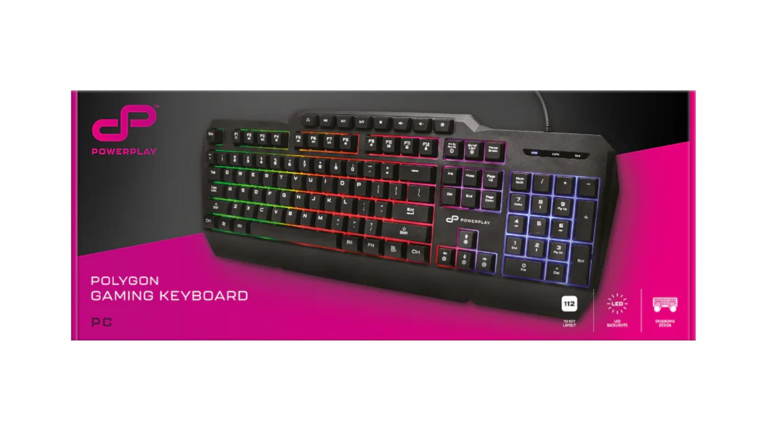 Upgrade your desktop setup with the Powerplay Polygon 100% Membrane Gaming Keyboard—where style meets performance. Featuring vibrant ColourShift LED backlights, an edgy angular design, and durable double-injection keycaps, this keyboard is built for both work and play. Enjoy soft membrane keys for comfortable typing and dedicated media controls for ultimate convenience. Whether you’re conquering the battlefield or browsing the web.