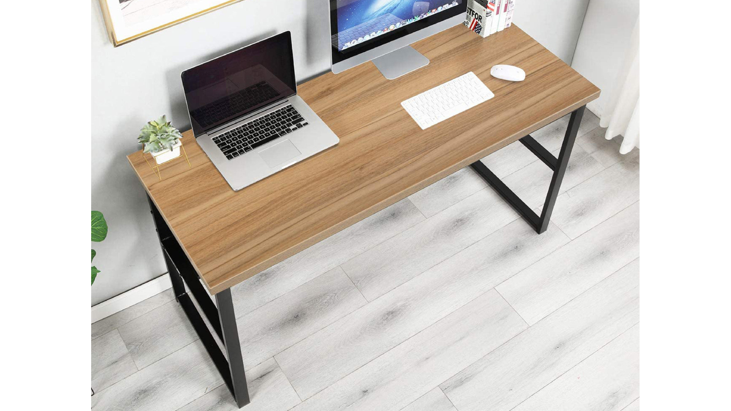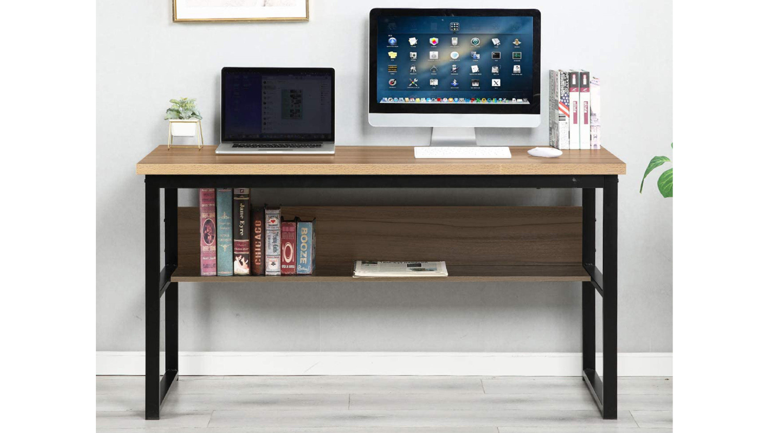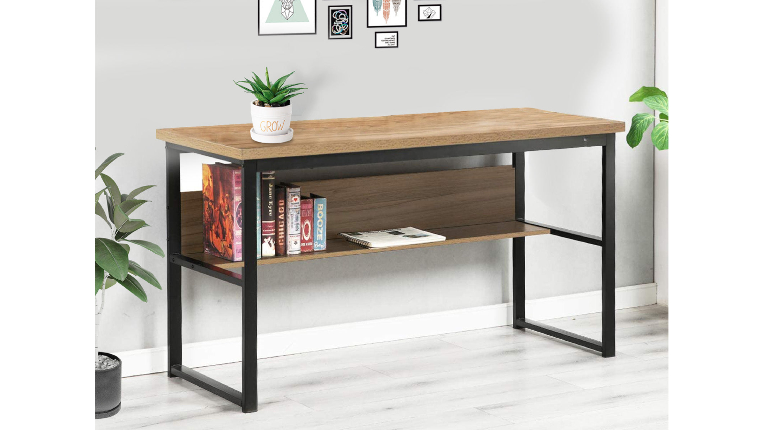 Introducing the TSB Living Coelsh Desk with Bookshelf, the ultimate solution for a sleek and efficient workspace. Crafted from a robust powder-coating steel base and particleboard with smooth melamine, this desk sets the stage for maximum productivity. Below the top layer is an extra bookshelf, perfect for maintaining a well-organised and tidy desk.