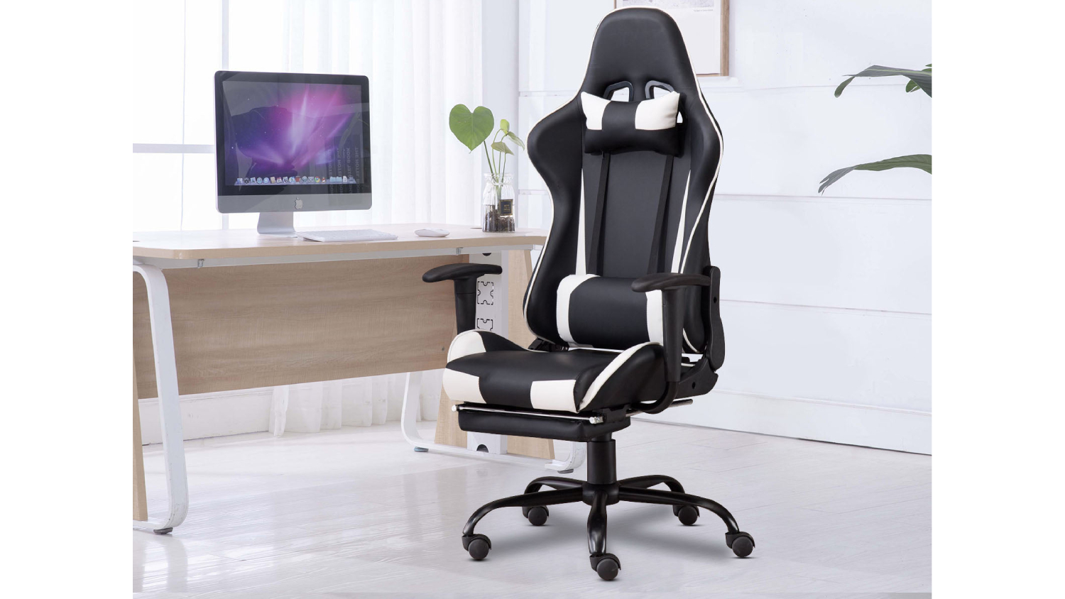 Experience ultimate comfort as you work and play, thanks to the TSB Living Racer Reclining PVC Gaming Chair with Leg Rest. Featuring high-density foam padding and a stylish two-tone look, this chair is perfect for any gamer. Enjoy ultimate customisation with adjustable height, 360° rotation, reclining features, and more. Plus, the detachable head and back cushions offer added support.