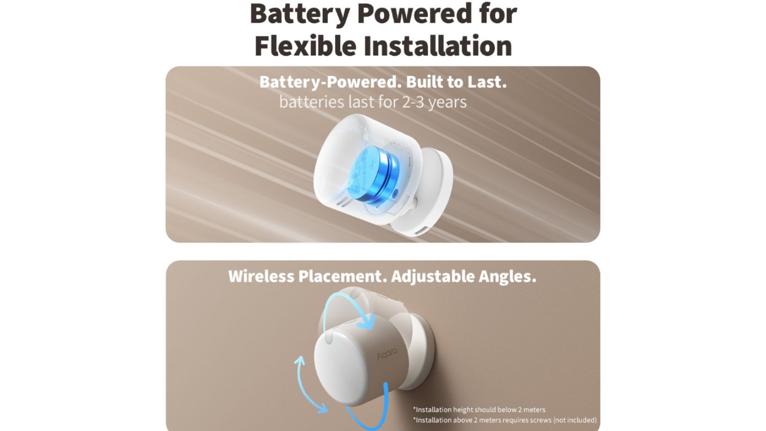 1Battery life data is based on tests conducted by the Aqara Laboratory. Actual battery life may vary depending on device settings, connected ecosystems, and usage.