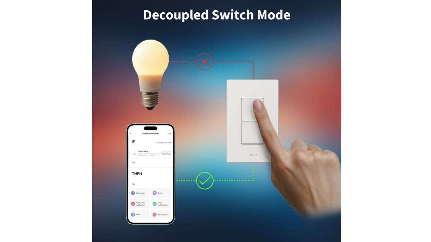 4 This switch requires an Aqara Hub for setup and enables smart features such as app control, automation, and remote access. Without a hub, it will operate as a standard wall switch only.