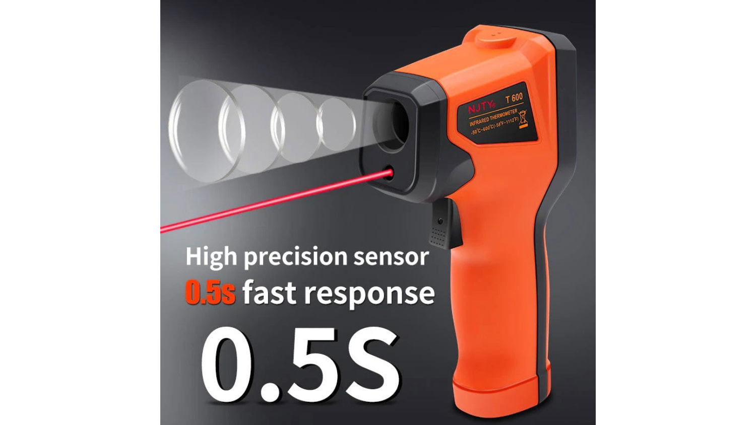 Get precise temperature readings using the Kmall Handheld Infrared Thermometer Gun. This device offers a range (up to 600℃) and superior long-distance measurement, thanks to its powerful 12:1 distance-to-spot ratio and targeting laser. It’s also built with durable ABS plastic, which resists scratches and extreme environments.