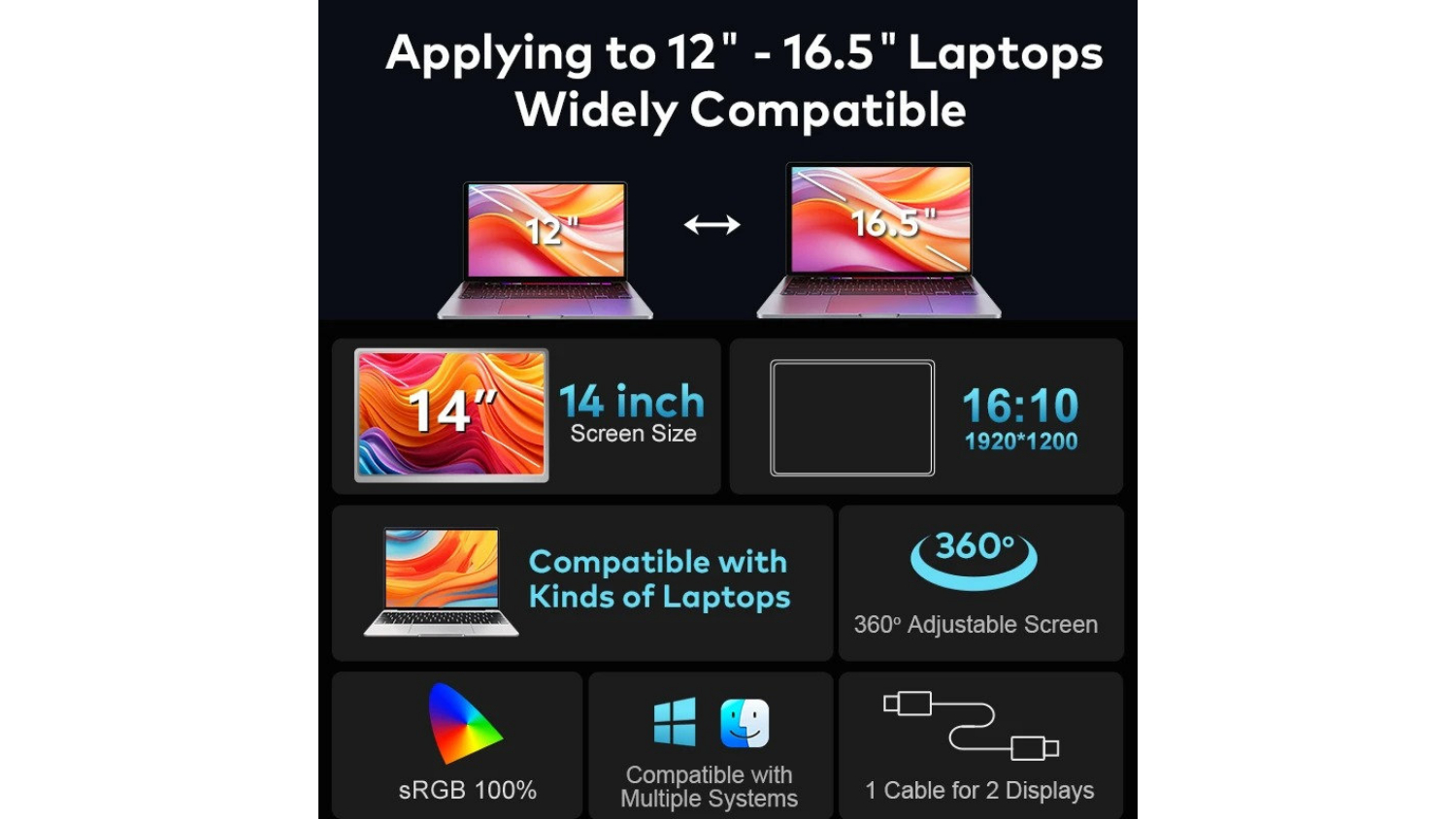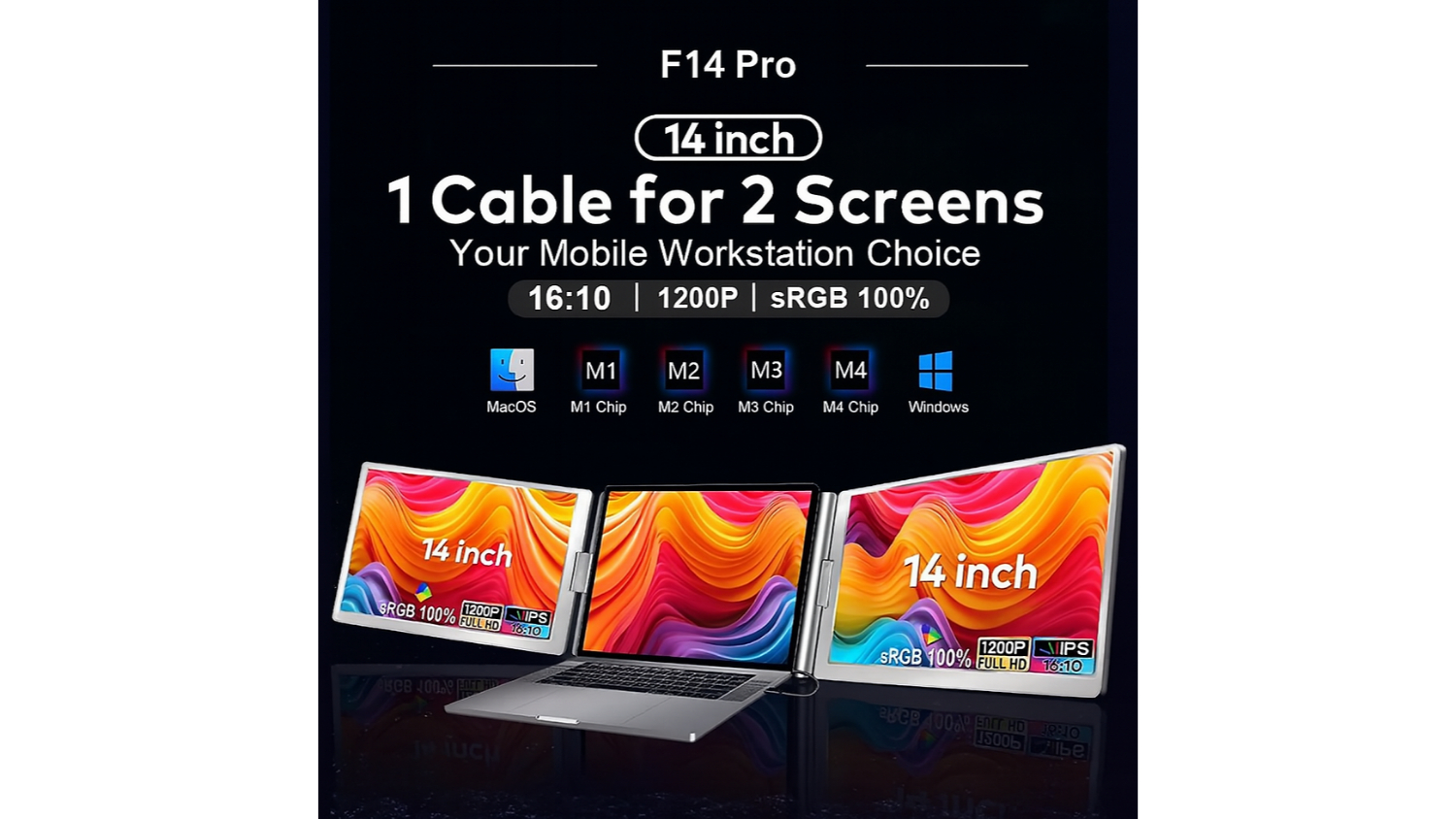 Maximise your workflow on the go with the Lumiview F14 Pro Slim 14" FHD Portable Monitor This dual 14" IPS display offers Full HD 1920 x 1200 resolution, 100% sRGB colour accuracy, and a 16:10 aspect ratio for seamless multitasking. Compatible with Windows and macOS laptops, it comes complete with USB-C/USB-A cables and a travel case for mobile productivity.