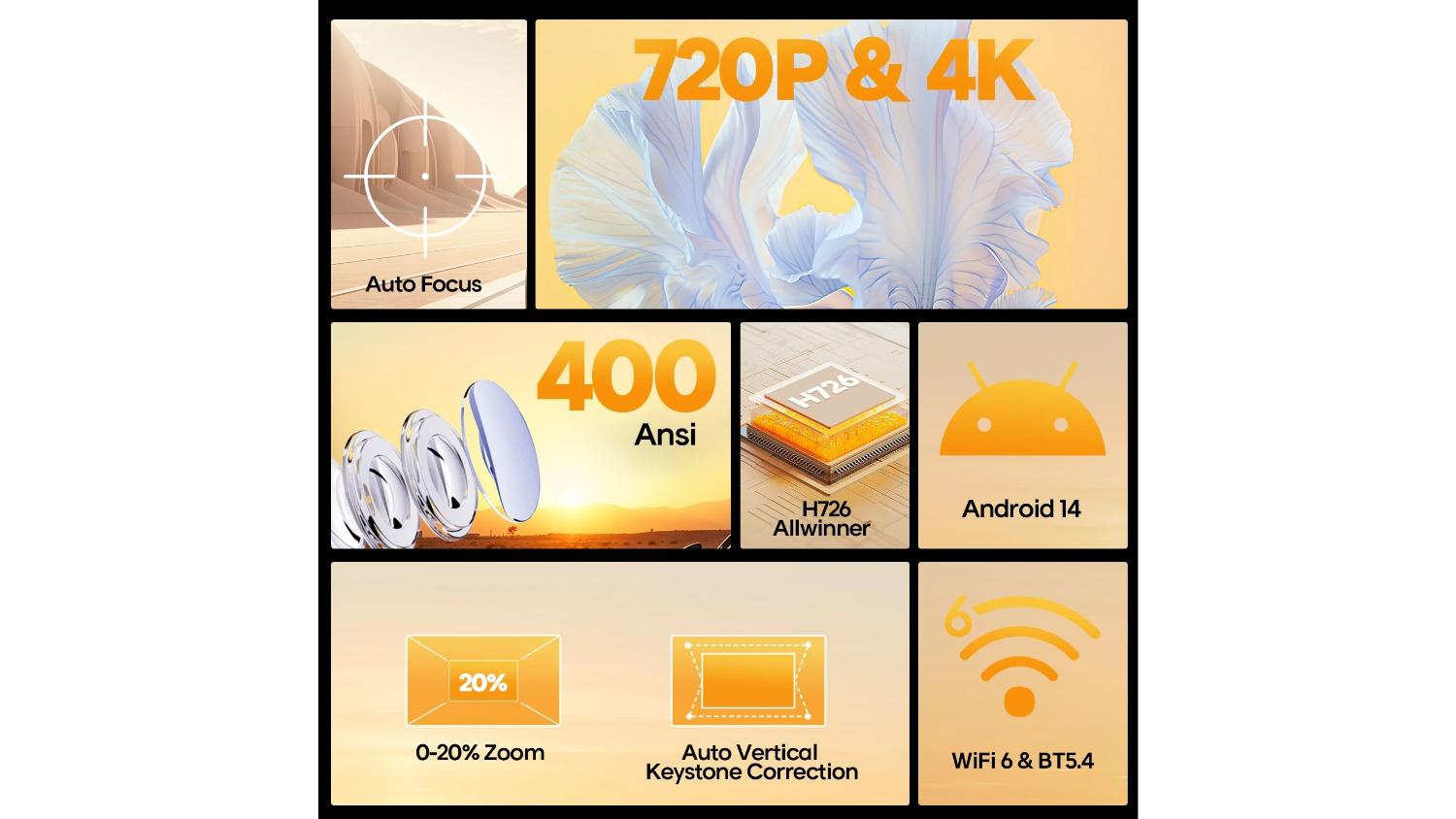 Enjoy big‑screen entertainment anywhere with the Magcubic HY300Max 720P Portable Projector. With a sharp 720p native resolution, 400 ANSI lumens, and rich contrast, this unit delivers clear, vibrant visuals for movies, presentations, and classes. Powered by Android 14, this lightweight projector lets you stream, cast, and download apps with ease—perfect for home, travel, or work on the go.