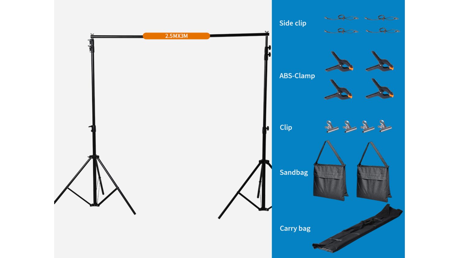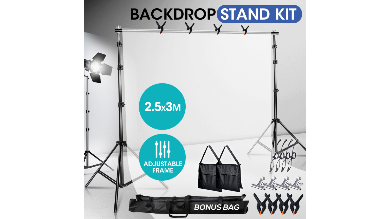 Transform your filming experience with the Sello Extra Secure Photography Backdrop Stand Kit 2.5 x 3m! Perfect for all your creative projects, this kit includes two backdrop stands, four crossbars, four clips, four clamps, four side clips, two sandbags and a carry bag. It also features a foldable tripod design for easy setup and storage, while its adjustable height and length let you customise your backdrop according to your needs.