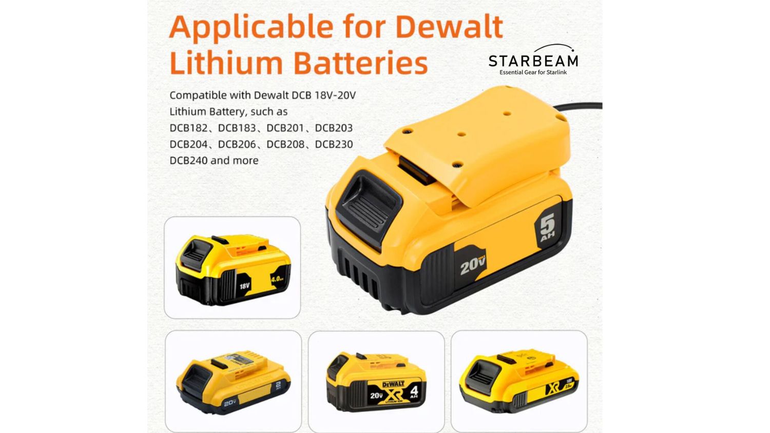 Starbeam Dewalt Portable Battery Charger Adapter for Starlink Mini 18v
