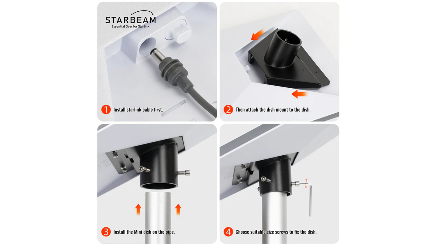 Secure your Starlink Mini with confidence using the Starbeam Metal Pole Mount. This accessory delivers a snug and stable fit to ensure your device remains perfectly positioned. Compatible with poles up to 39mm in diameter, it provides versatile mounting options for both indoor and outdoor setups.