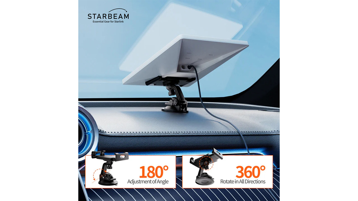 Keep your Starlink Mini steady on every journey using the Starbeam Suction Cup Mount! This powerful accessory locks firmly in place, offering full rotation for customisable angles and a smooth, stable experience. It is also compatible with most phones and tablets for convenient, safe driving.