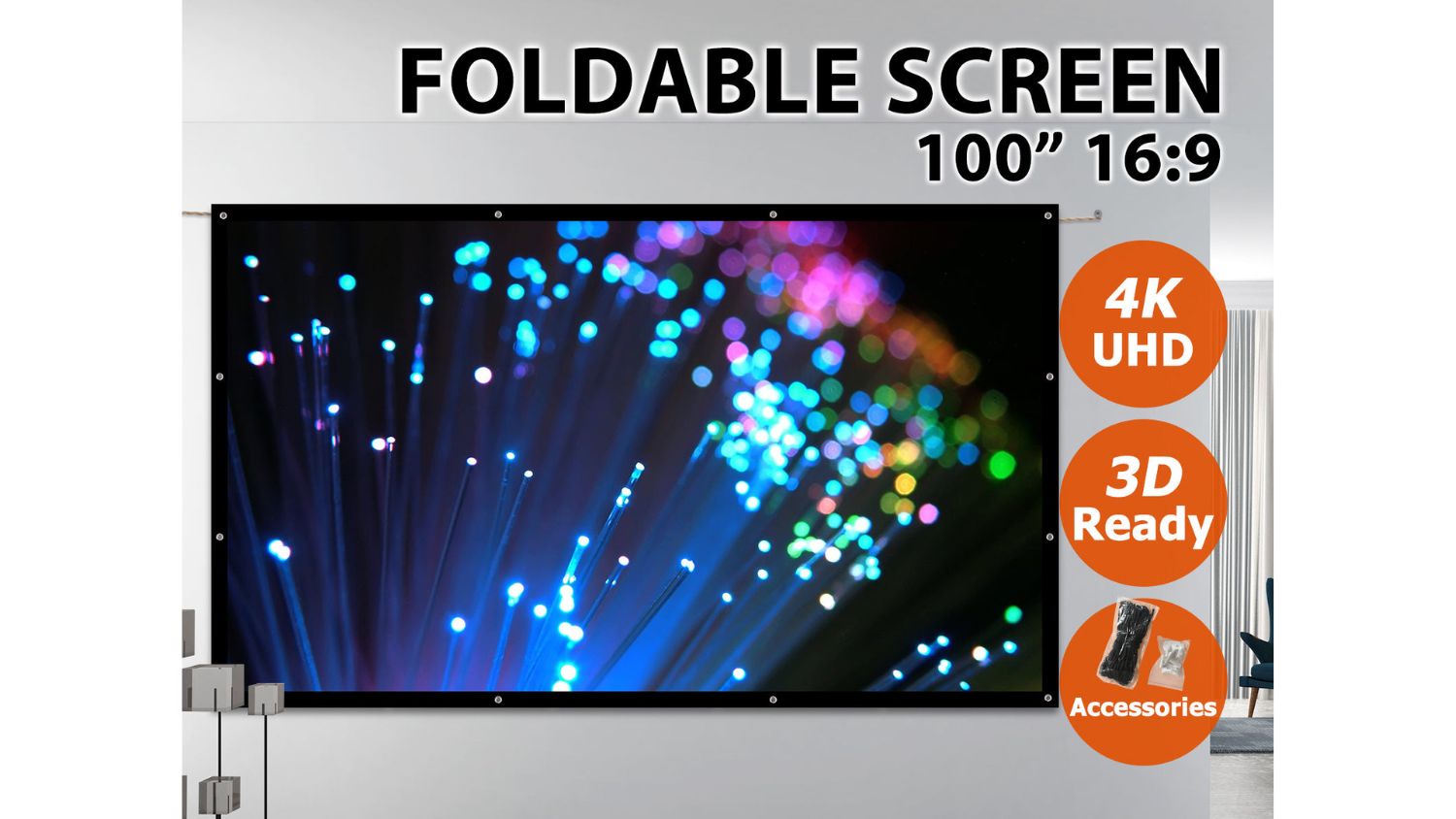 Bring the big-screen experience home with the Collapsible Screen 120 Inches. Designed to deliver vivid colours and crisp details, this innovative foldable projector screen brings your movies, shows, and presentations to life. Lightweight, collapsible, and easy to carry, it’s perfect for home theatres, backyard movie nights, or on-the-go viewing.