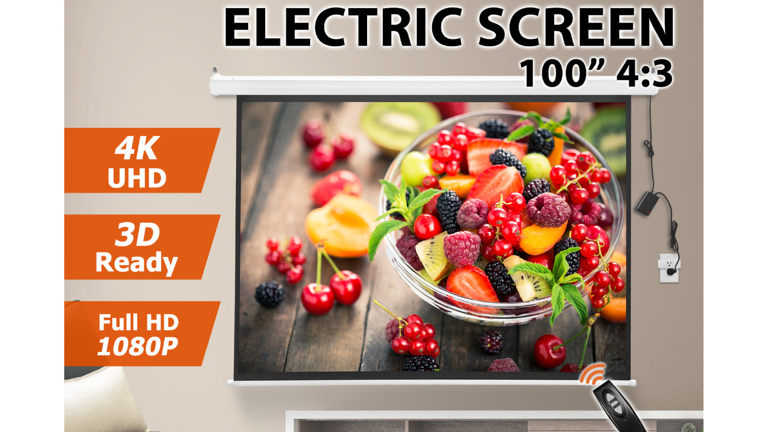TSB Living Electric Wireless Remote Projector Screen 100"