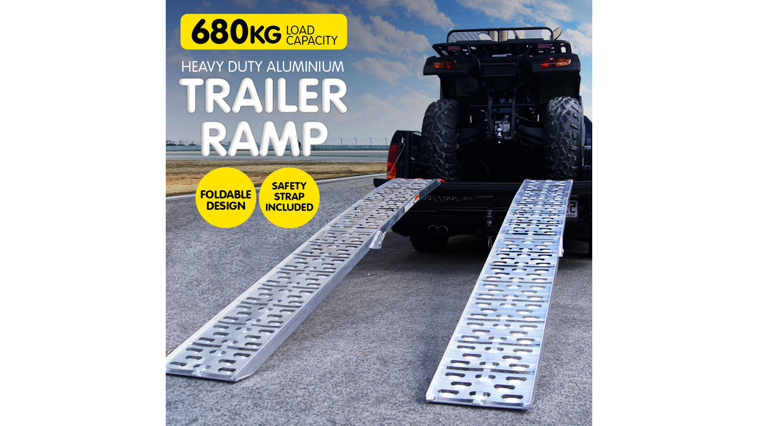 Boasting a robust aluminium construction, the Klika Heavy Duty Aluminium Trailer Ramps are strong enough to handle the weight of a farm quad! This bundle includes two folding ramps and two securing straps. Each ramp has a safe load of up to a whopping 340kg, so you can load a farm quad bike and a rider into your trailer safely.