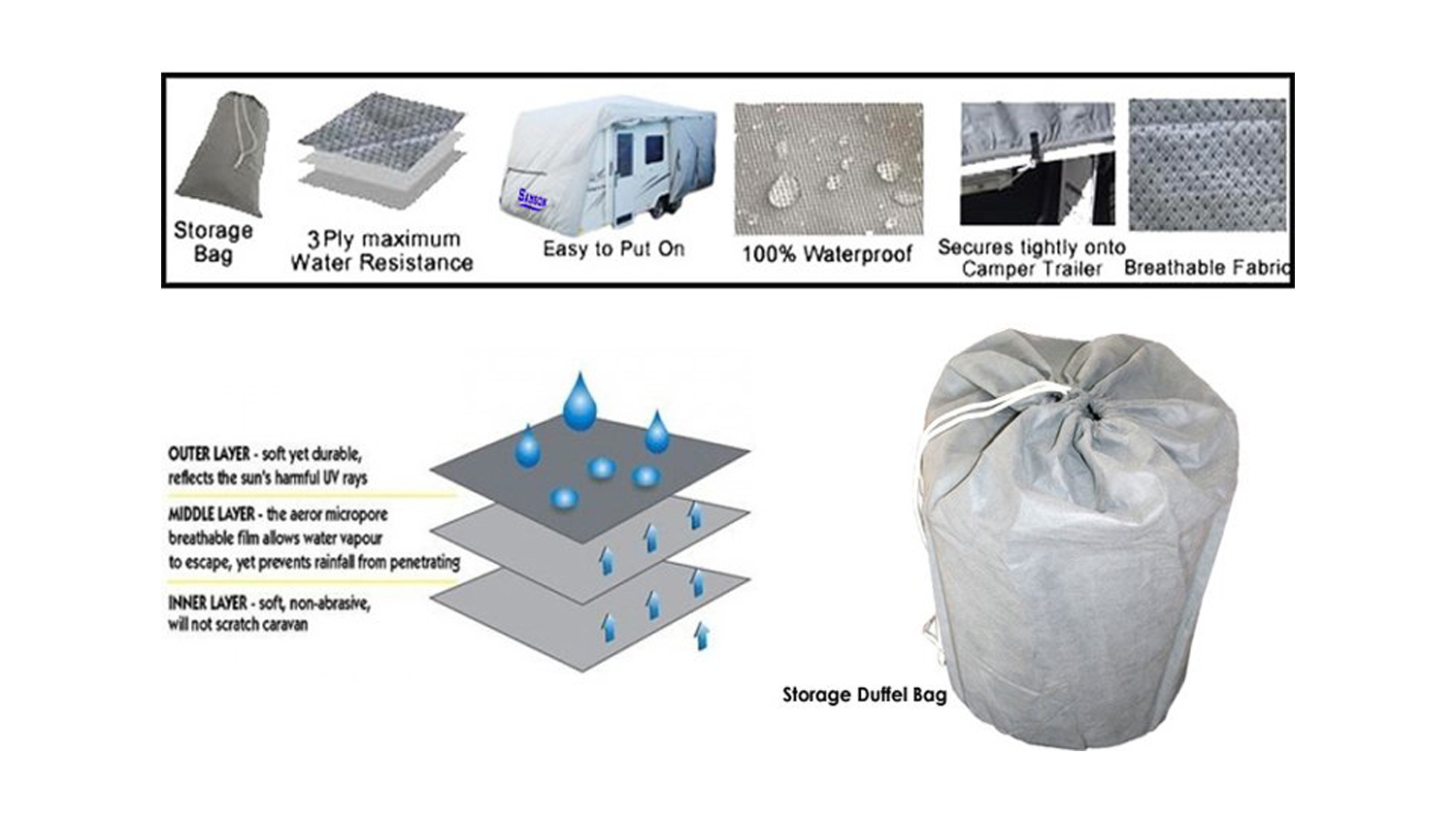Keep your caravan safe from harsh environmental elements, thanks to this Samson 22-24ft Heavy Duty Caravan Cover! This triple-zipped cover is specially designed to maintain your caravan’s pristine condition. It features ventilation vents, UV treatment, elastic hems, quick-release underbody mounting straps, and 100% breathable waterproof material to deliver comprehensive security. Say goodbye to cheaper, inferior covers, which will disintegrate in hotter climates, and opt for this robust protective solution.