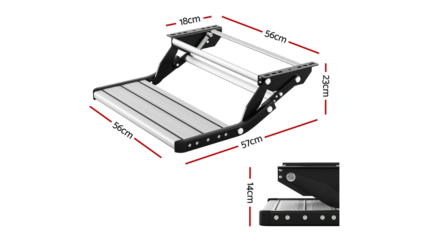 Upgrade your travel setup with the Weisshorn Aluminium Pull-Out Caravan Step. Made from heavy-duty aluminium and solid steel materials, the folding step provides a smooth platform. It is easy to manually retract, just pull the unit out and let the spring lock into place. The safe, anti-slip design prevents falls, so you can get into your vehicle with ease. It provides safe, fast and comfortable entry to your recreational vehicle, bringing amazing convenience on the road. Have a Weisshorn RV Folding Step ready!