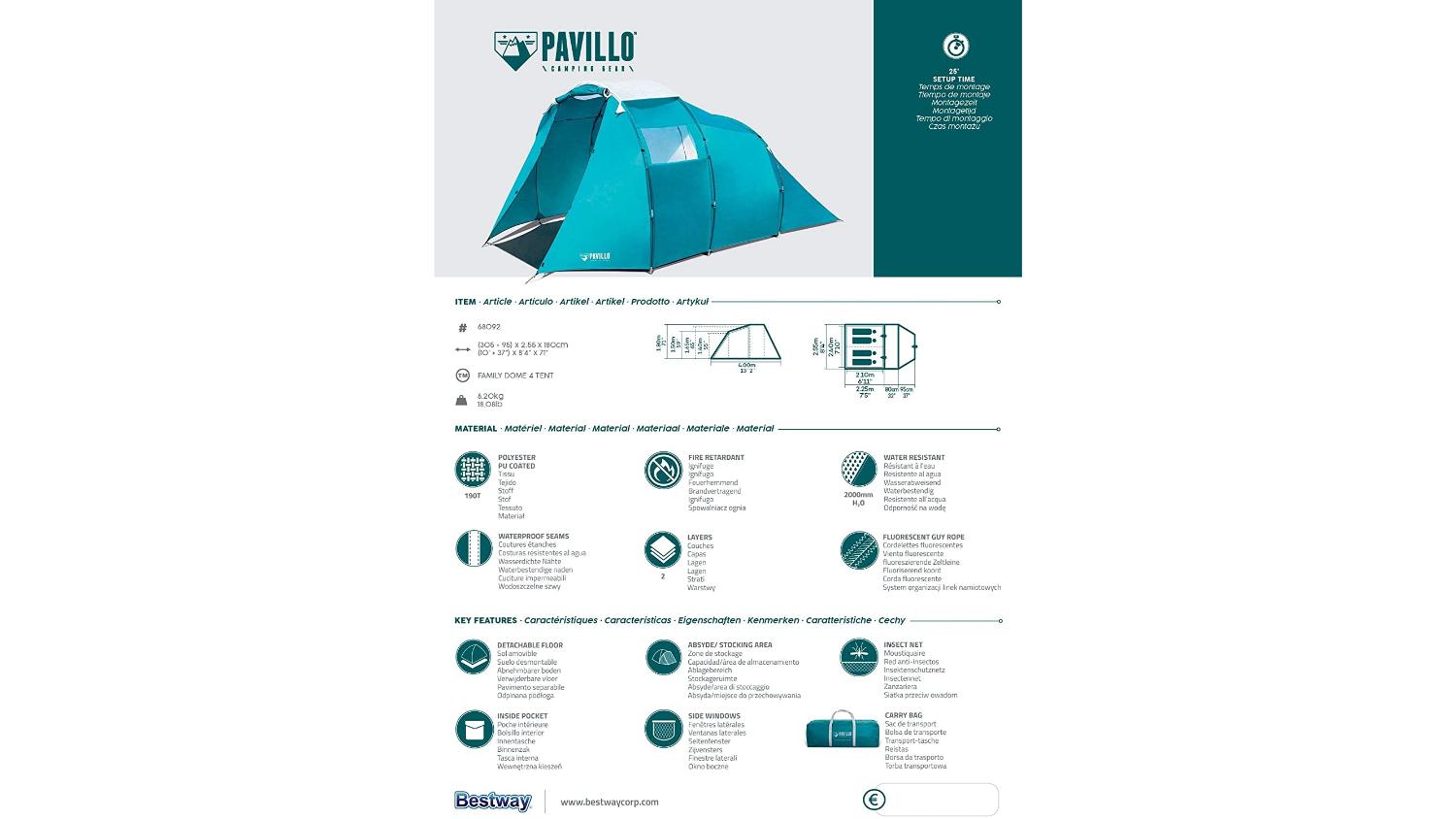 Make the most of your camping adventures with the Bestway Pavillo 4-Person Family Tent. Designed for comfort and durability, this tent comfortably fits a family of four and offers a spacious living area and a sleeping section that can be split into two rooms. Featuring double-layer insulation, waterproof seams, and an insect net, it keeps you protected and cosy.