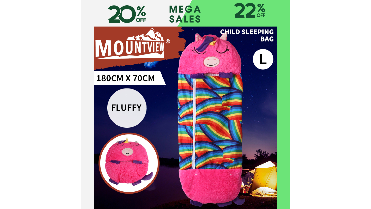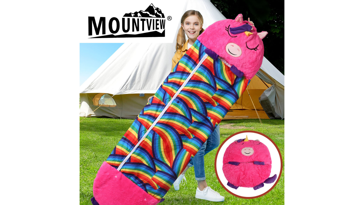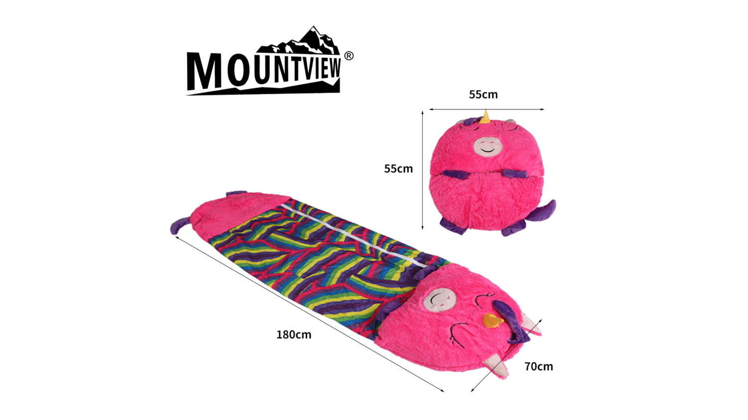 Make bedtime extra fun and let your little ones enjoy snuggling up in the Mountview Novelty Compact Fluffy Children's Sleeping Bag! This adorable pink unicorn sleeping bag is perfect for sleepovers, camping trips, or just cosying up at home. It is also made comfortably soft and transforms into a fun plush toy when not in use. Plus, it's machine-washable, making it a breeze to maintain.