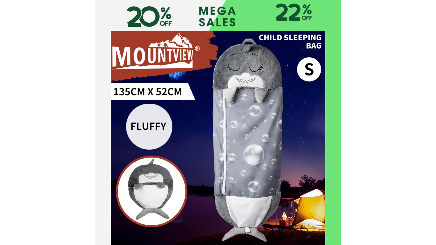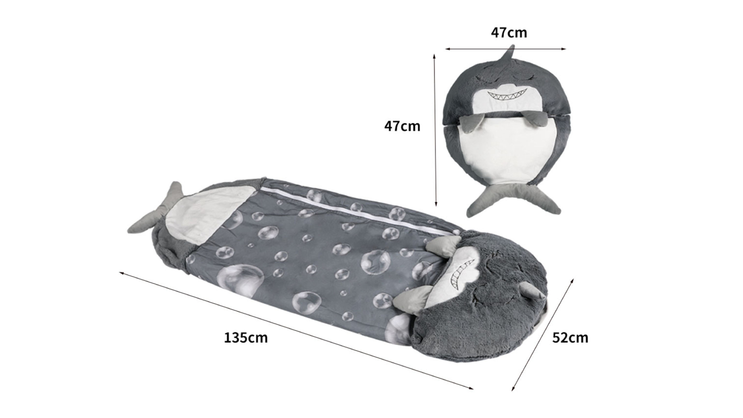 Make bedtime extra fun and let your little ones enjoy snuggling up in the Mountview Novelty Compact Fluffy Children's Sleeping Bag! This adorable grey shark sleeping bag is perfect for sleepovers, camping trips, or just cosying up at home. It is also made comfortably soft and transforms into a fun plush toy when not in use. Plus, it's machine-washable, making it a breeze to maintain.
