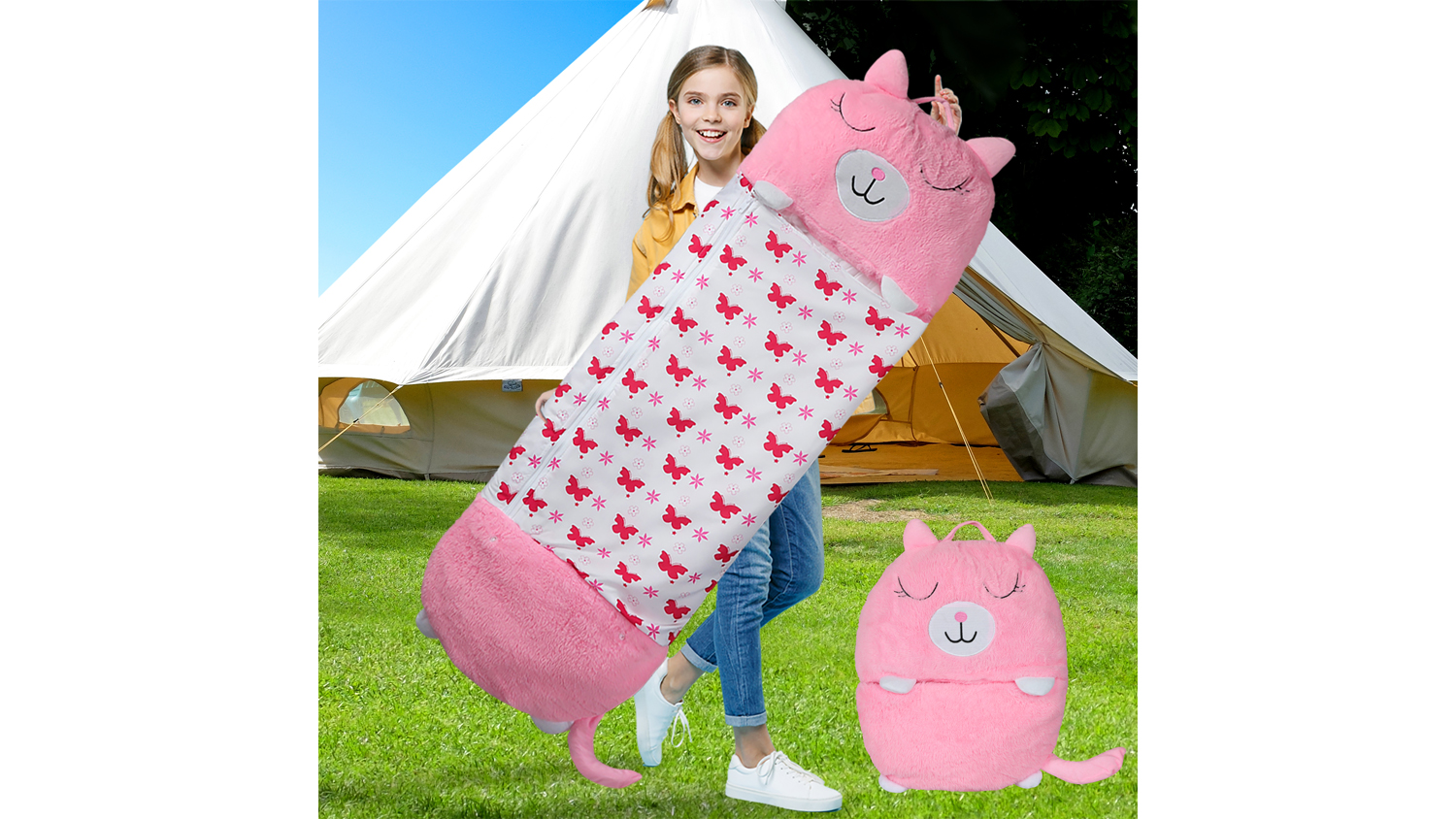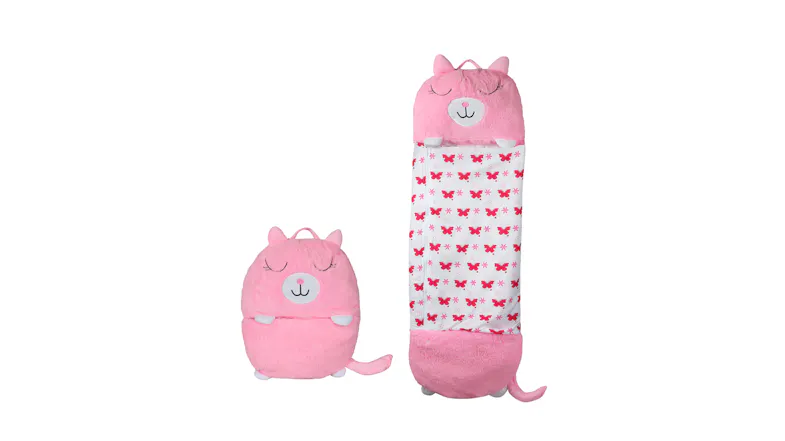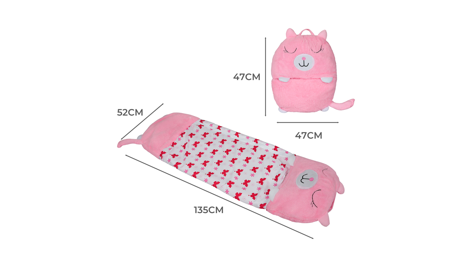 Make bedtime extra fun and let your little ones enjoy snuggling up in the Mountview Novelty Compact Fluffy Children's Sleeping Bag! This adorable pink kitten sleeping bag is perfect for sleepovers, camping trips, or just cosying up at home. It is also made comfortably soft and transforms into a fun plush toy when not in use. Plus, it's machine-washable, making it a breeze to maintain.
