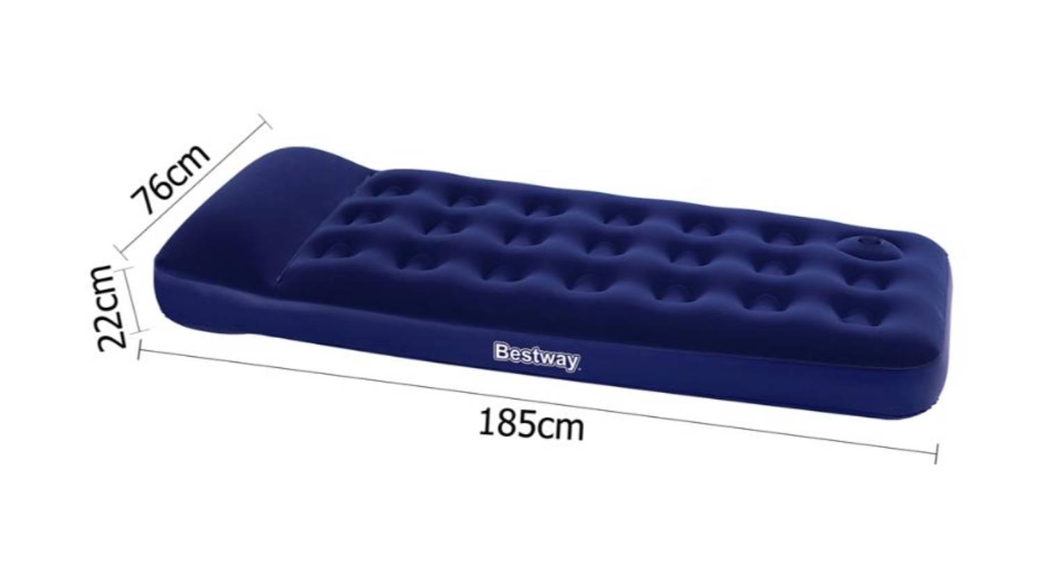 Sweet dreams are just a pump away with the Bestway Inflatable Single Flocked Airbed! It features a flocked sleeping surface, sturdy coil-beam construction, and a dreamy 30cm built-in pillow for the ultimate comfort. Plus, it inflates and deflates quickly with the built-in foot pump, stores away in a jiffy, and won't break the bank.