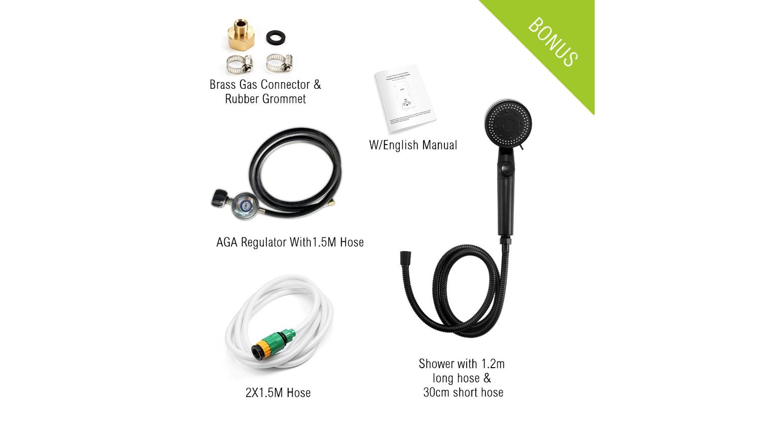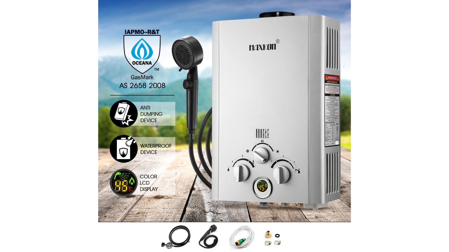 Enjoy instant hot showers anywhere with the Maxkon Portable Powered Water Heater with Extra Hose 520L/Hr. Designed for outdoor use, this unit delivers continuous hot water, with a clear temperature display and adjustable controls for safe, comfortable use. Compact and easy to carry, it’s the perfect companion for camping, road trips, or outdoor living.