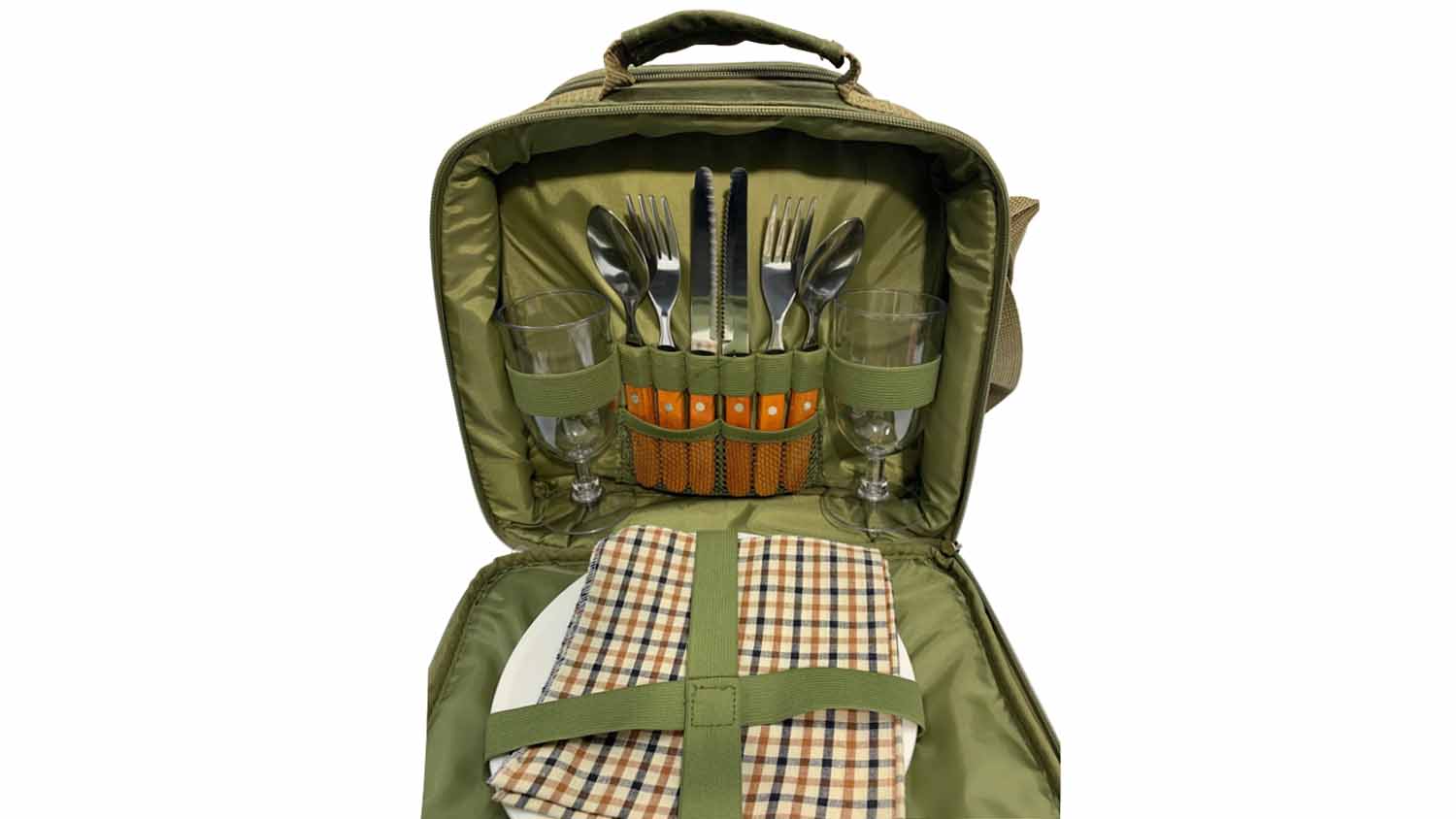 Turn your outdoor dining experience into an unforgettable celebration with the Easy Days Canvas 2-Person Picnic Bag! Crafted from premium waxed canvas fabric, padded EPE foam interior, and white EVA lining, this bag is ready to accompany you on your outdoor escapades. Plus, it also includes 2 wineglasses, stainless steel knives, forks, and spoons with elegant wood handles and 20cm plates for your culinary creations