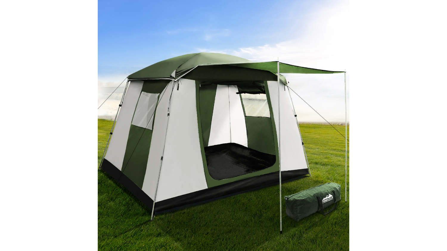 Elevate your camping game with the Weisshorn 6-Person Dome Tent – the epitome of spacious luxury in the great outdoors! Designed for beachside serenity or countryside charm, this cabin tent is your ticket to expansive comfort. The water-resistant double-layer 190T polyester fabric stands as a fortress against unpredictable weather, ensuring you stay dry and cosy inside. For added comfort, the fabric also provides exceptional ventilation.