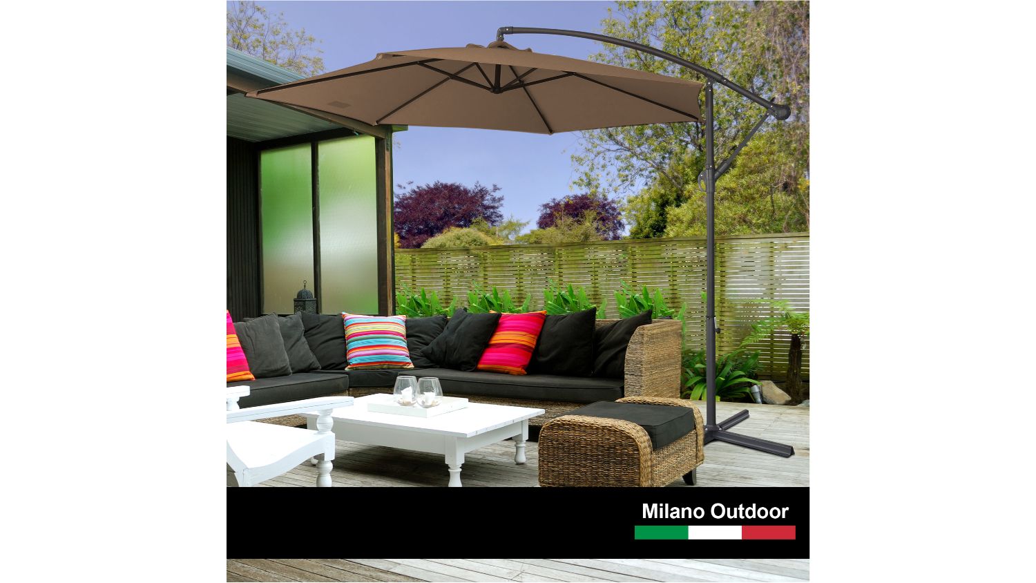 Elevate your al-fresco experience with the Milano Décor 3m Outdoor Umbrella! Featuring a durable 160GSM polyester fabric cover that spans a generous 3 m diameter and 2.5 m height, this umbrella gives you a shaded place to relax and enjoy the outdoors. Designed for durability and longevity, it has a rust-proof, black powder-coated steel frame. Plus, it has an air-vented top that reduces wind pressure while allowing heat to circulate.