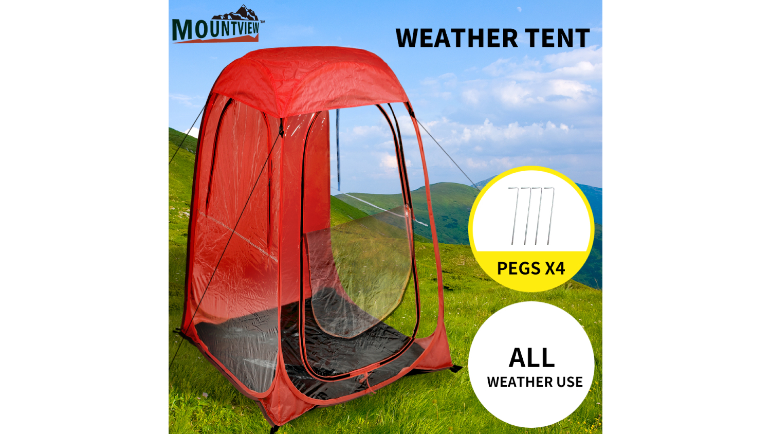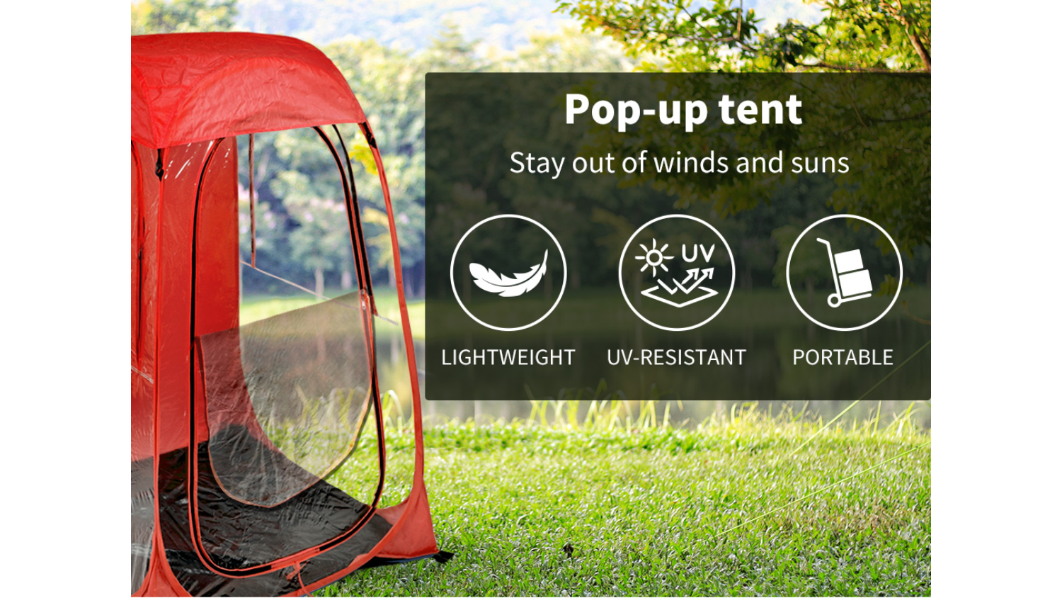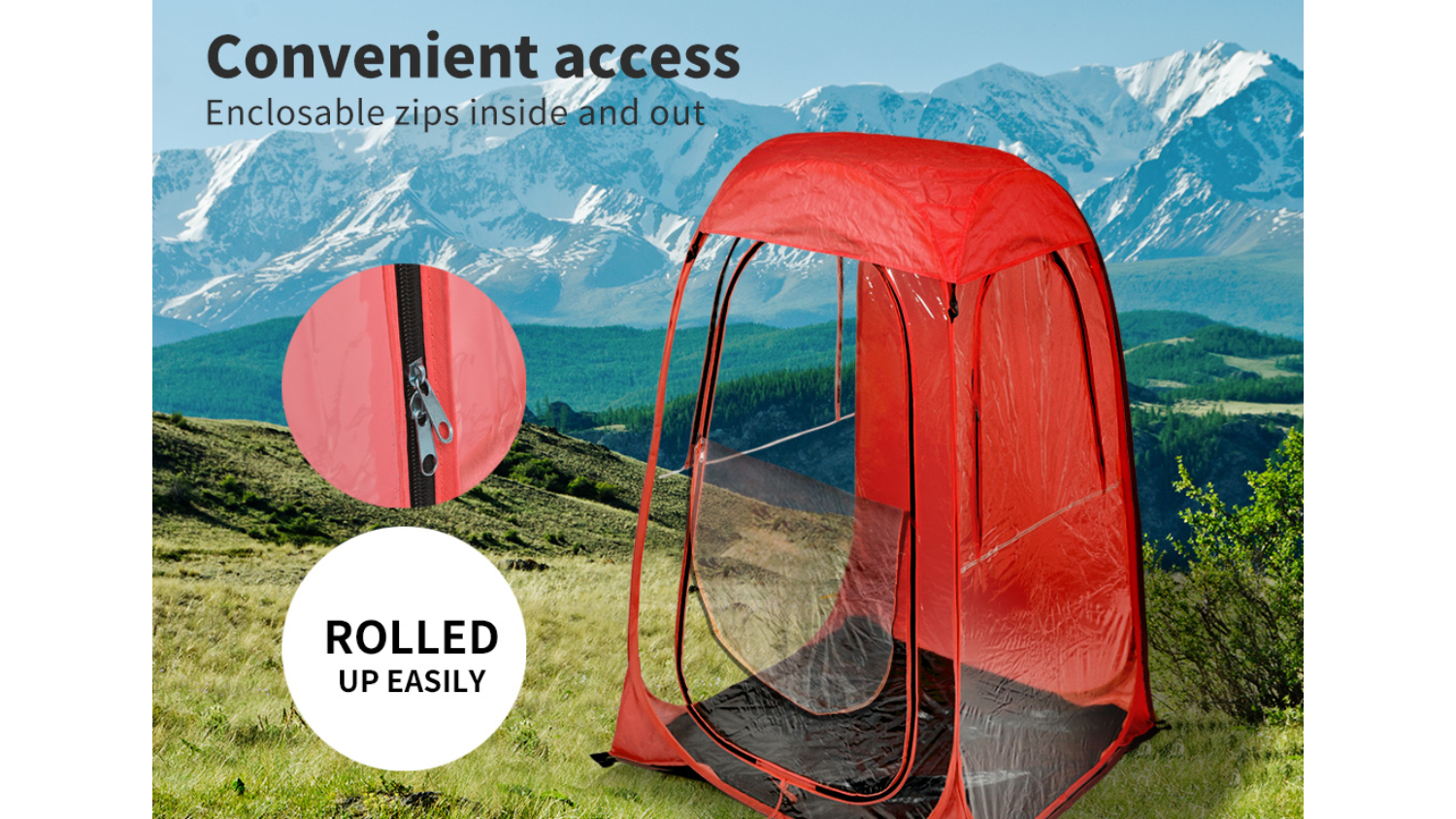 Monview Single Person Pop-Up Shelter with PVC Windows, Removable Roof - Red