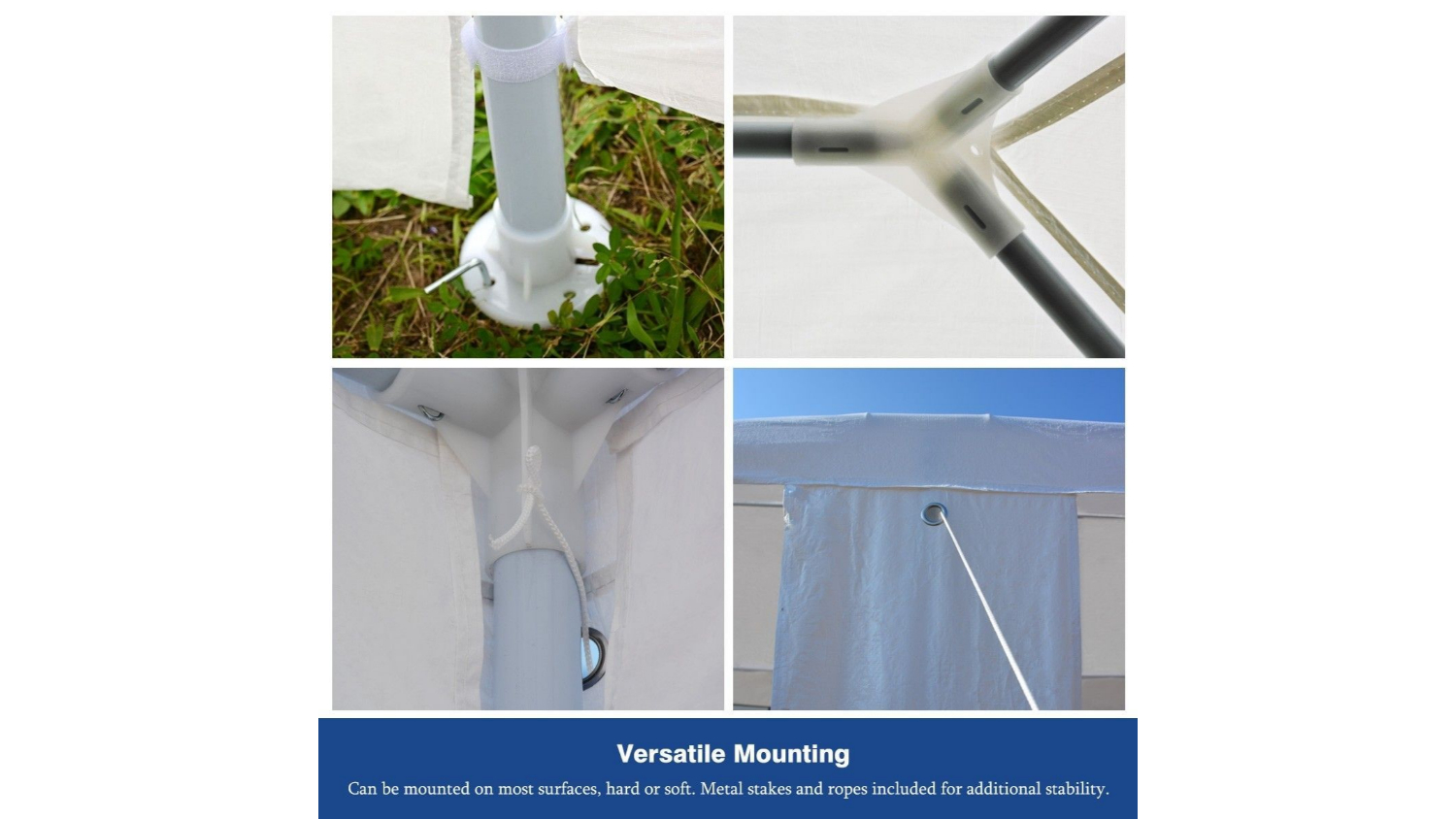 *Note: Polyester Fabric is not fireproof; please keep away from fire sources. This type of party tent is designed for a party event only. They are meant to be used as temporary cover, not for daily use.