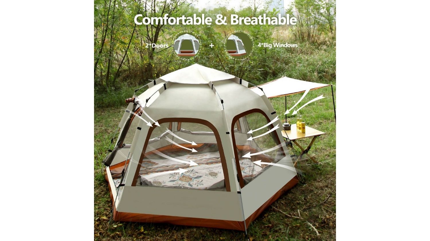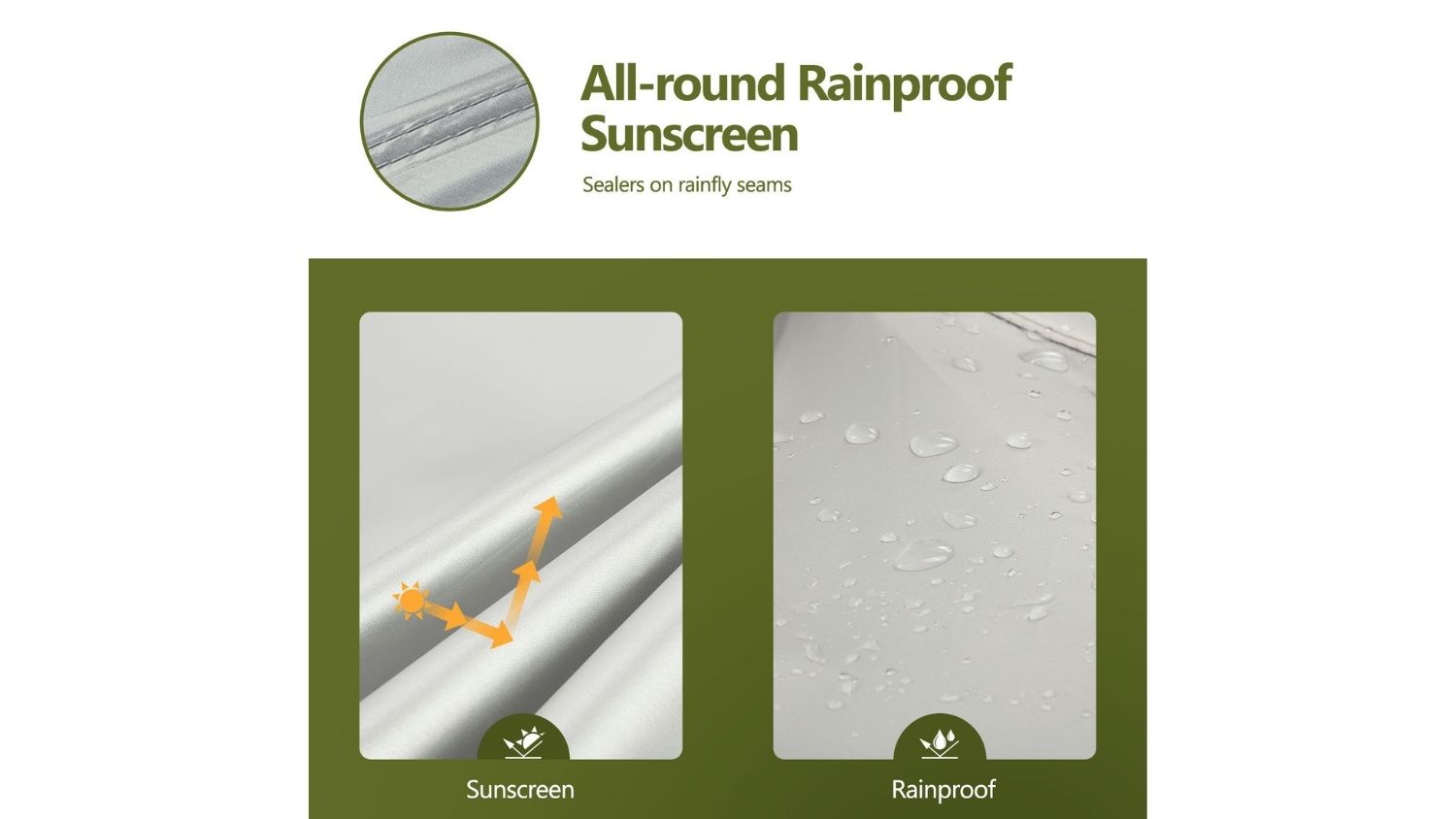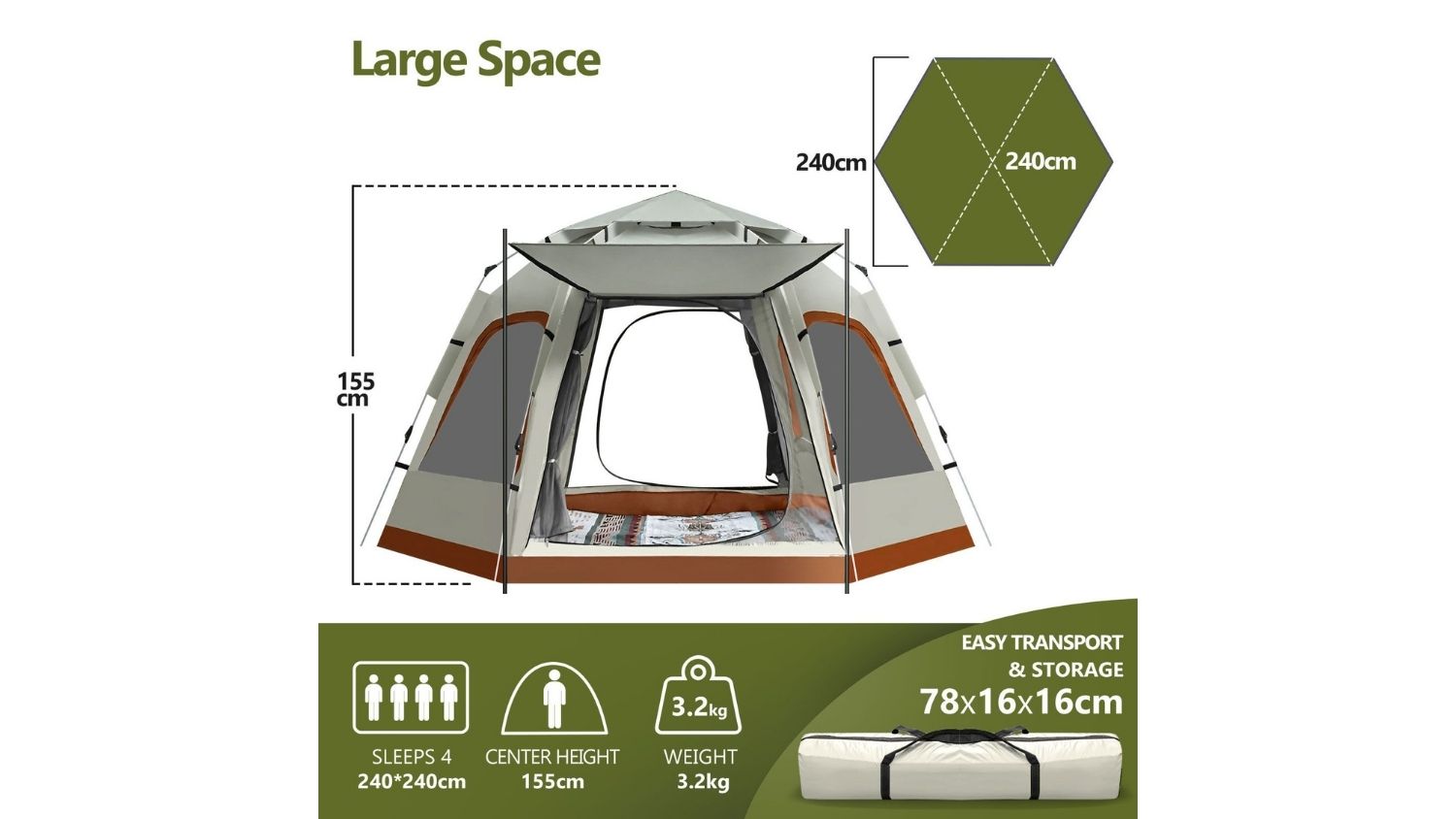 The OGL 4 Man Beach Tent Shelter is your go‑to outdoor companion for comfort and protection. Made with strong polyester and Oxford cloth, reinforced fibreglass poles, and waterproof PU taping, this unit offers excellent UV and water resistance to keep you protected in any weather. It also equips two wide doors and four mesh windows ensure easy movement and great airflow. With room for up to four people and a generous 155 cm height, there’s plenty of space to relax, change clothes, or unwind together.