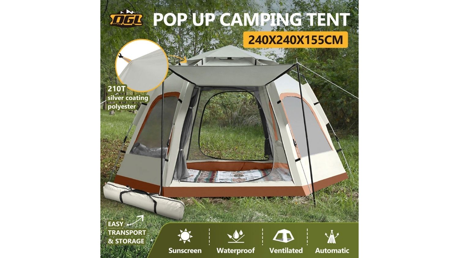 OGL Pop-Up 4 Man Camping Tent with Ventilation, Carry Case 240 x 240 x 155cm - White/Brick