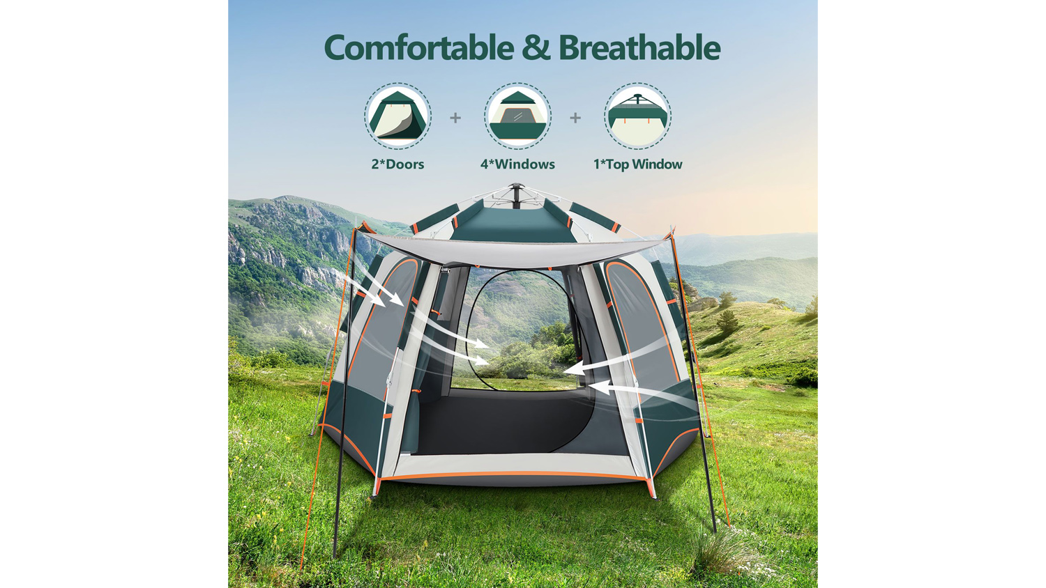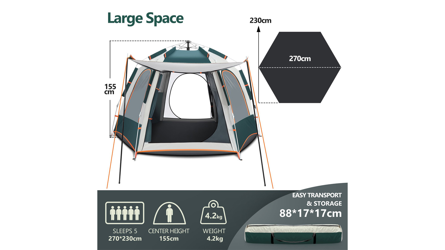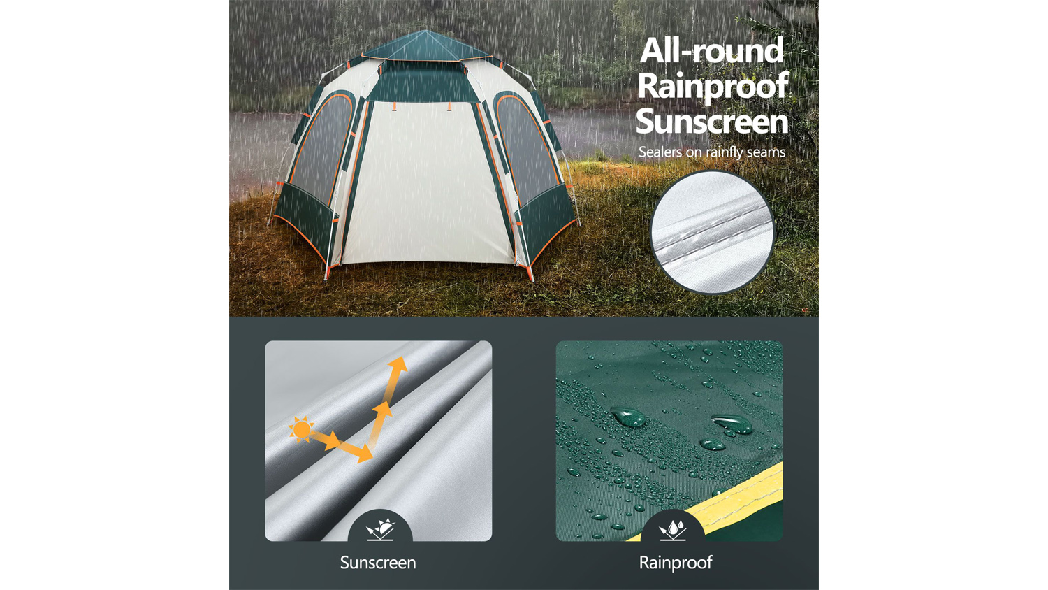 Elevate your camping adventure with the OGL 5 Person Camping Tent. Powered by an instant hydraulic system for lightning-fast assembly, this tent is spacious enough for five people and stays perfectly cool. The breathable mesh doors and windows maximise airflow to keep you comfortable while ensuring pesky bugs stay outside. Crafted from durable polyester with an Oxford cloth groundsheet and strong fibreglass poles, the tent is waterproof, UV‑resistant, and built to last.