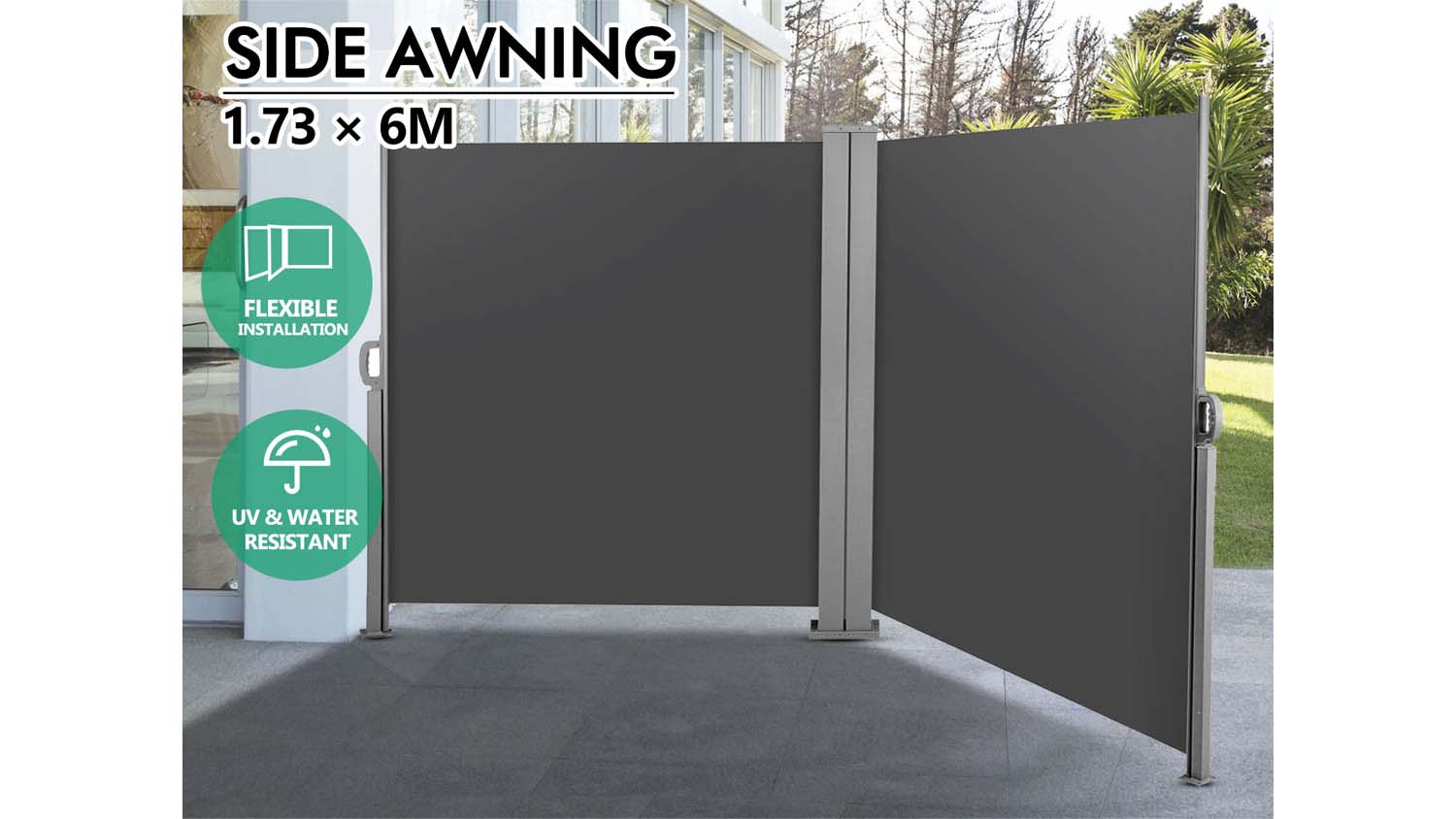 Transform your patio into a private oasis with the TSB Living Double Wide Side Awning 1.7 x 3m. This large and spacious awning provides ample shade and protection, making it the perfect place to relax and unwind with friends and family. Now you can keep wind and low-lying sun at bay!