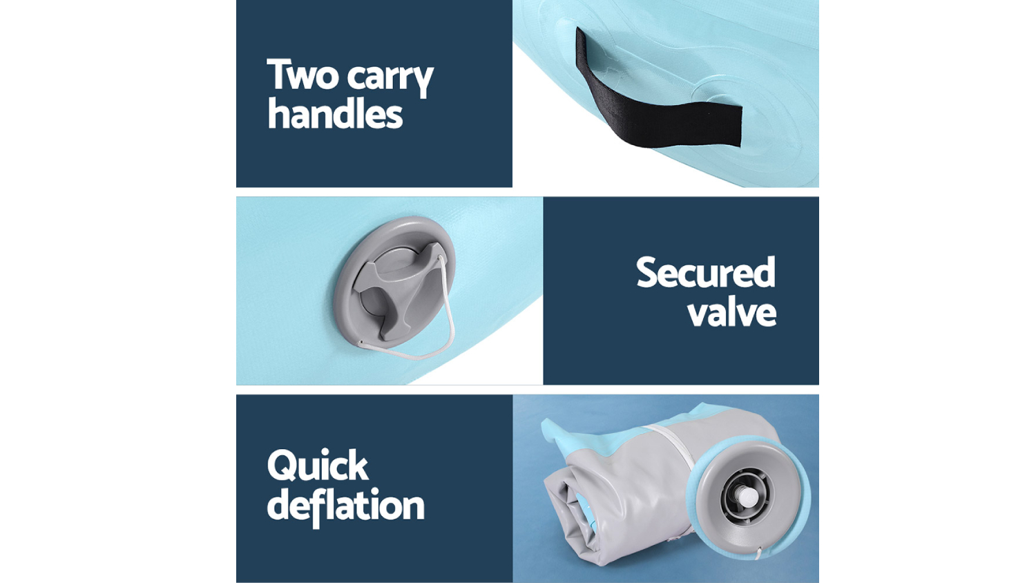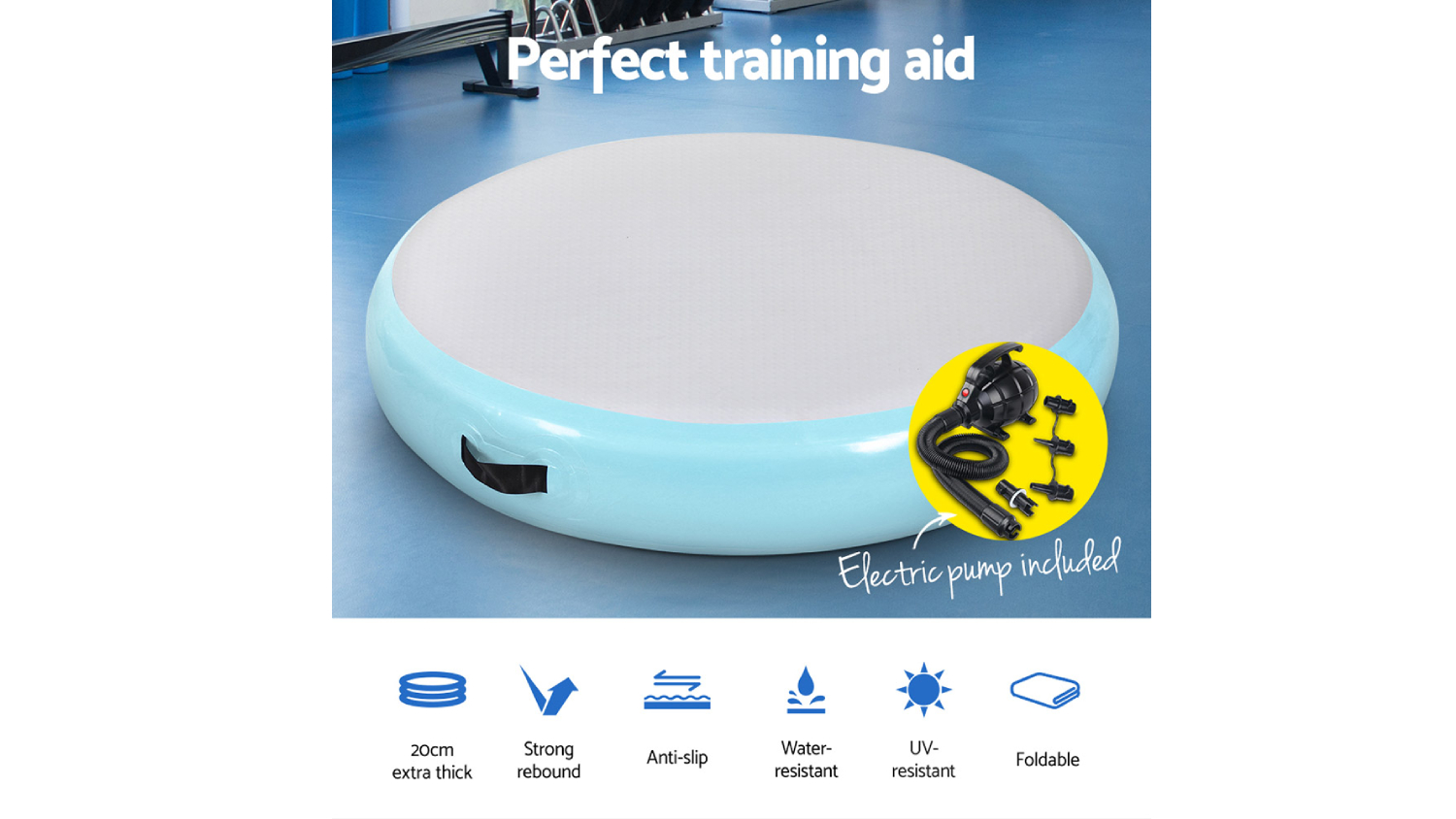 Upgrade your fitness routine with Everfit Inflatable Square Air Track Mat 1m x 1m with Electric Air Pump. Perfect for gymnastics, martial arts, yoga, cheerleading and more, the air track mat is a versatile and essential tool for your training routine. Crafted with drop-stitched 1000-denier double-wall fabric, it ensures durability and stability during intense workouts.