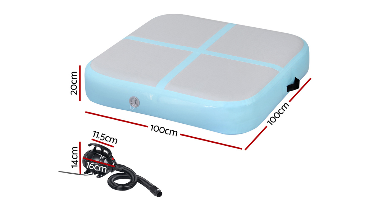 Upgrade your fitness routine with Everfit Inflatable Square Air Track Mat 1m x 1m with Electric Air Pump. Perfect for gymnastics, martial arts, yoga, cheerleading and more, the 1m air track is a versatile and essential tool for your training regime. Crafted with drop-stitched 1000-denier double-wall fabric, the Everfit air track ensures durability and stability during intense workouts.