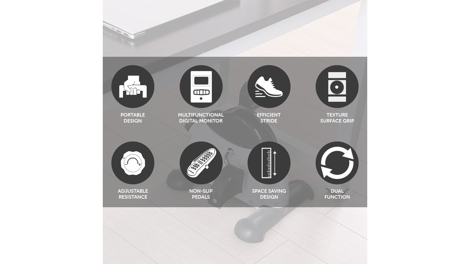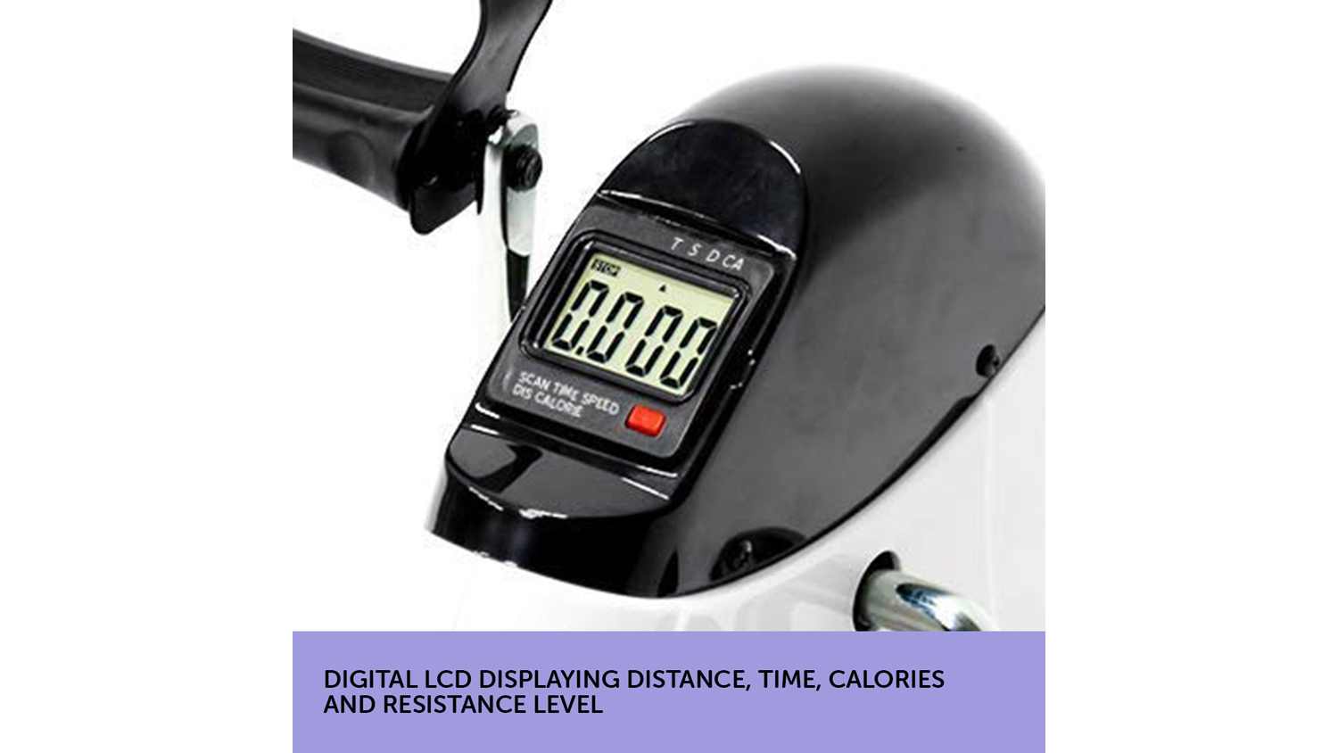 Build your body strength right in the comfort of your home using this Powertrain Arm and Leg Mini Exercise Bike! A great addition to your home gym, this fitness equipment features large non-slip pedals with foot straps and an adjustable resistance knob. It also incorporates a built-in computer LCD screen, which shows distance, time, count, total count, and calories.
