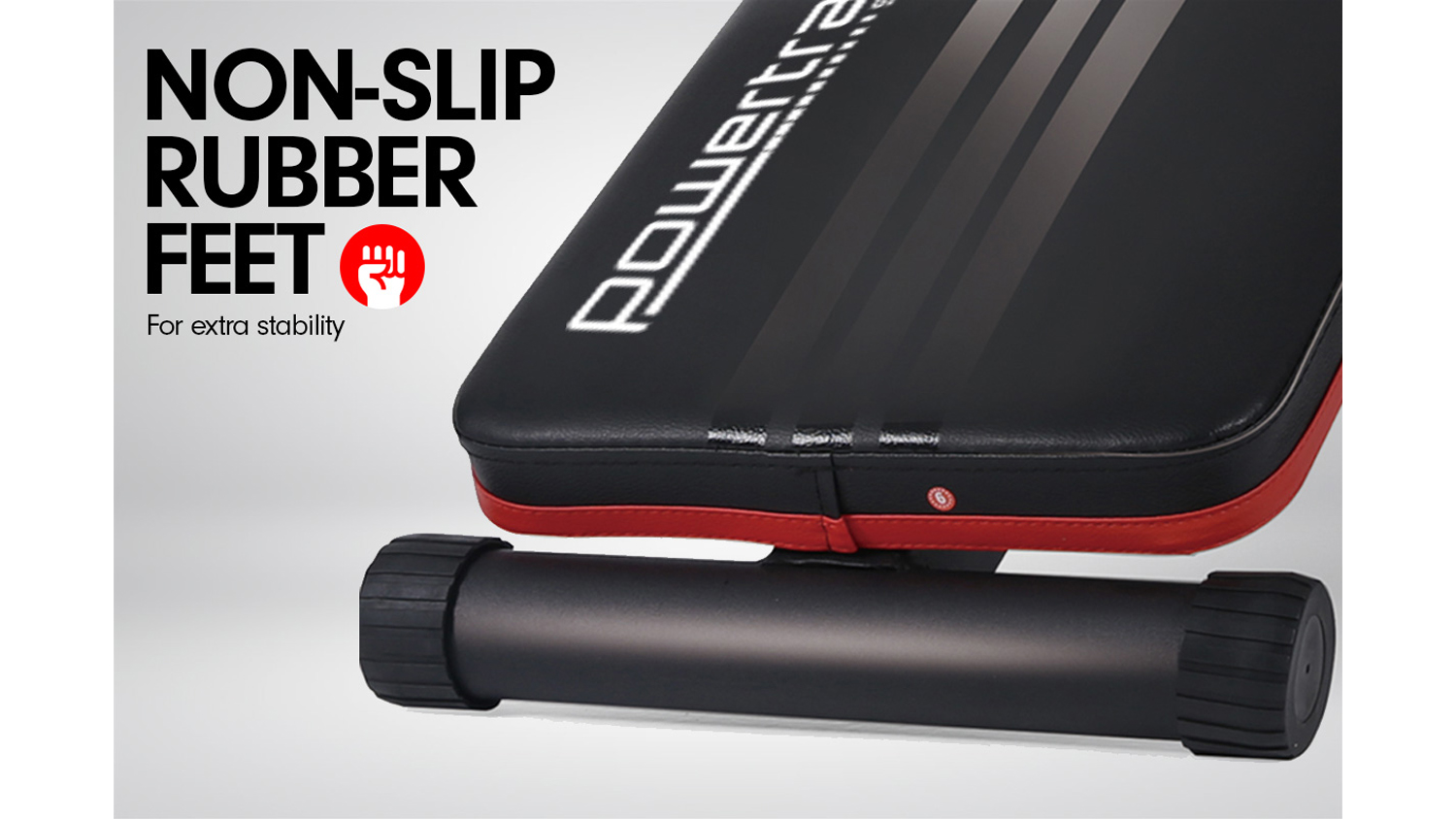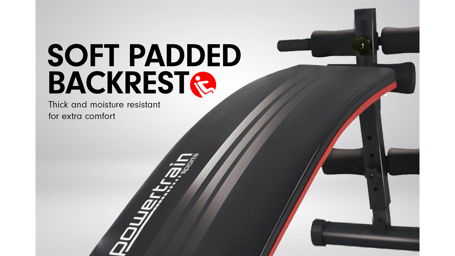 Upgrade your workout sessions with the Powertrain Incline/Decline Ab Sit-Up Gym Bench! A great addition to your compact home gym, this innovative steel incline sit-up bench helps to boost your core strength with sit-ups, twists, and abdominal exercises. Plus, this gym equipment can also quickly folds down for effortless storage.
