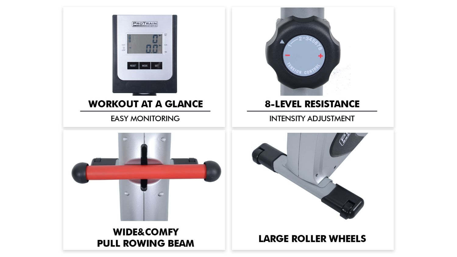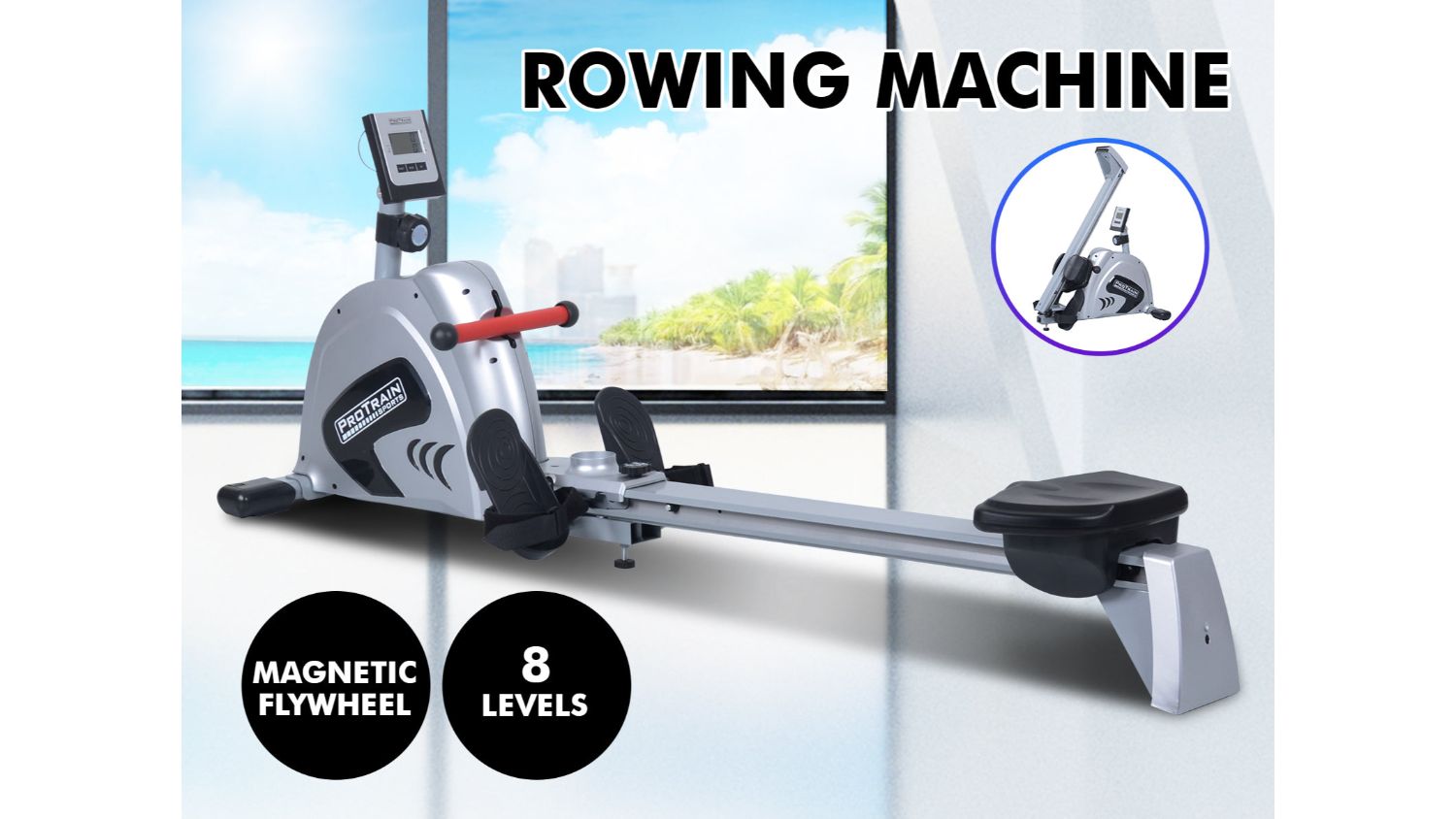 Make every workout count with the Protrain Fly Wheel Resistance System Rowing Machine – your gateway to a stronger, healthier you! It features up to 8 levels of manual resistance and an innovative magnetic brake system that delivers a holistic full-body workout experience. This rowing machine equips anti-slip footrests with adjustable foot straps, providing secure, smooth glides with every stroke. You can also keep your progress in check effortlessly using the large, user-friendly LCD display console. And when your sweat-inducing workout is over, fold it up and tuck it away for the next session.