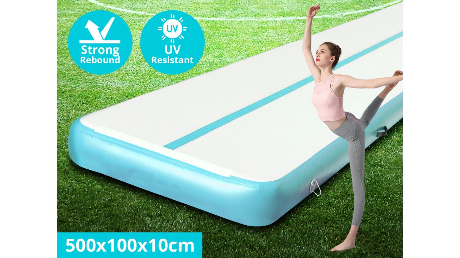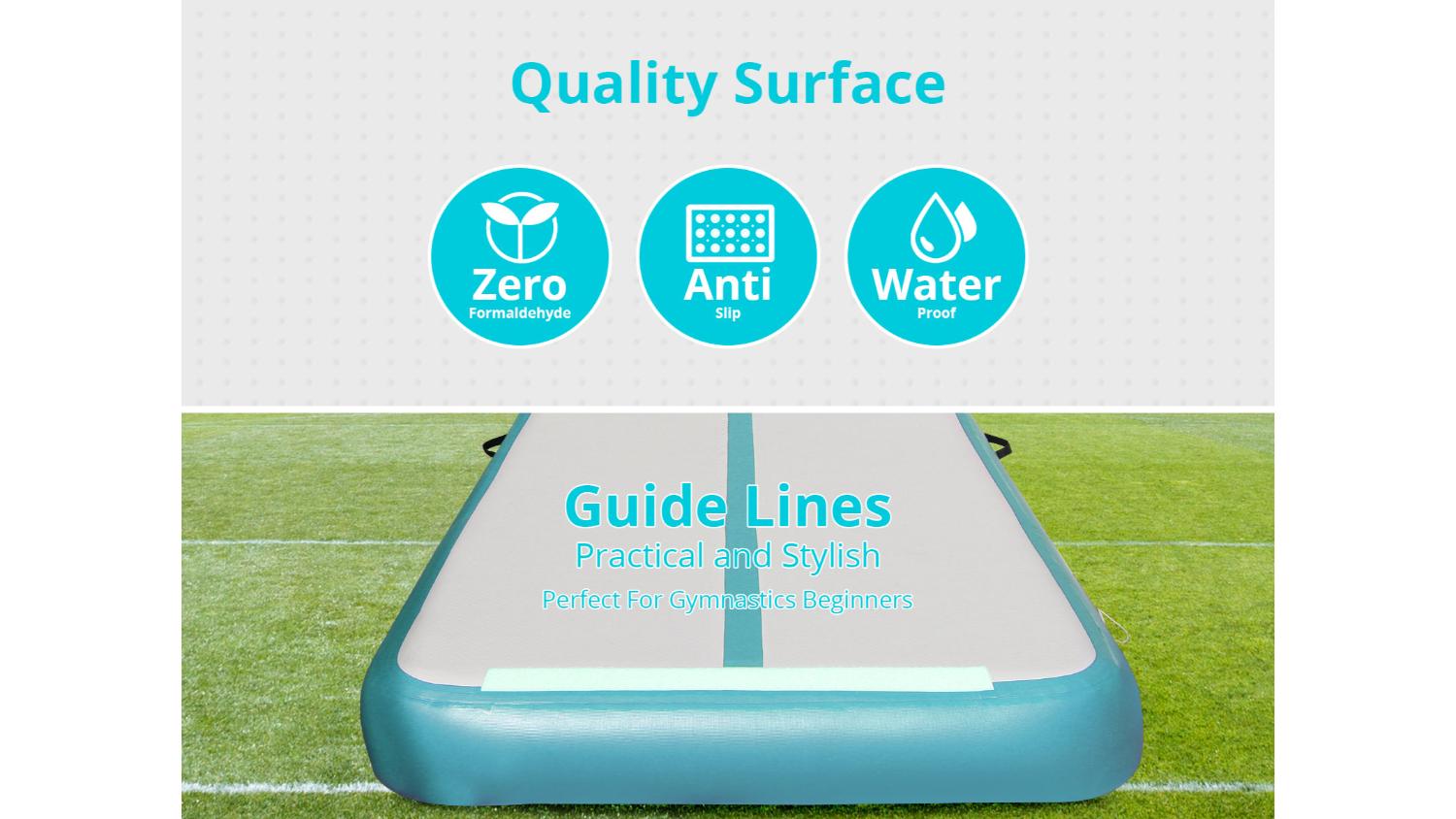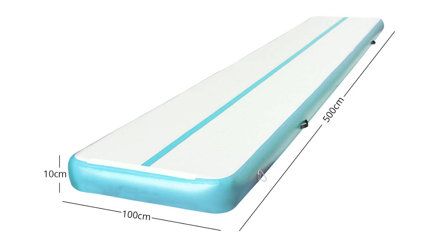 Designed as the ultimate training and competition landing platform, the PROTRAIN Inflatable Gymnastics Air Track 5 x 1m is a game-changer for gymnastics, cheerleading, martial arts, and school sports. It is crafted from 1000-denier double-wall PVC fabric with an anti-slip and wear-resistant surface to reduce impact significantly. Plus, the 10cm thickness is bouncier and highly versatile.