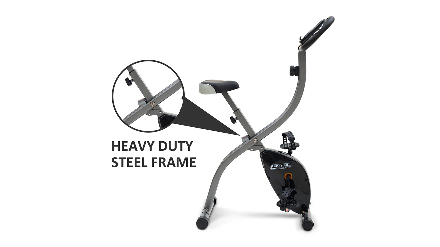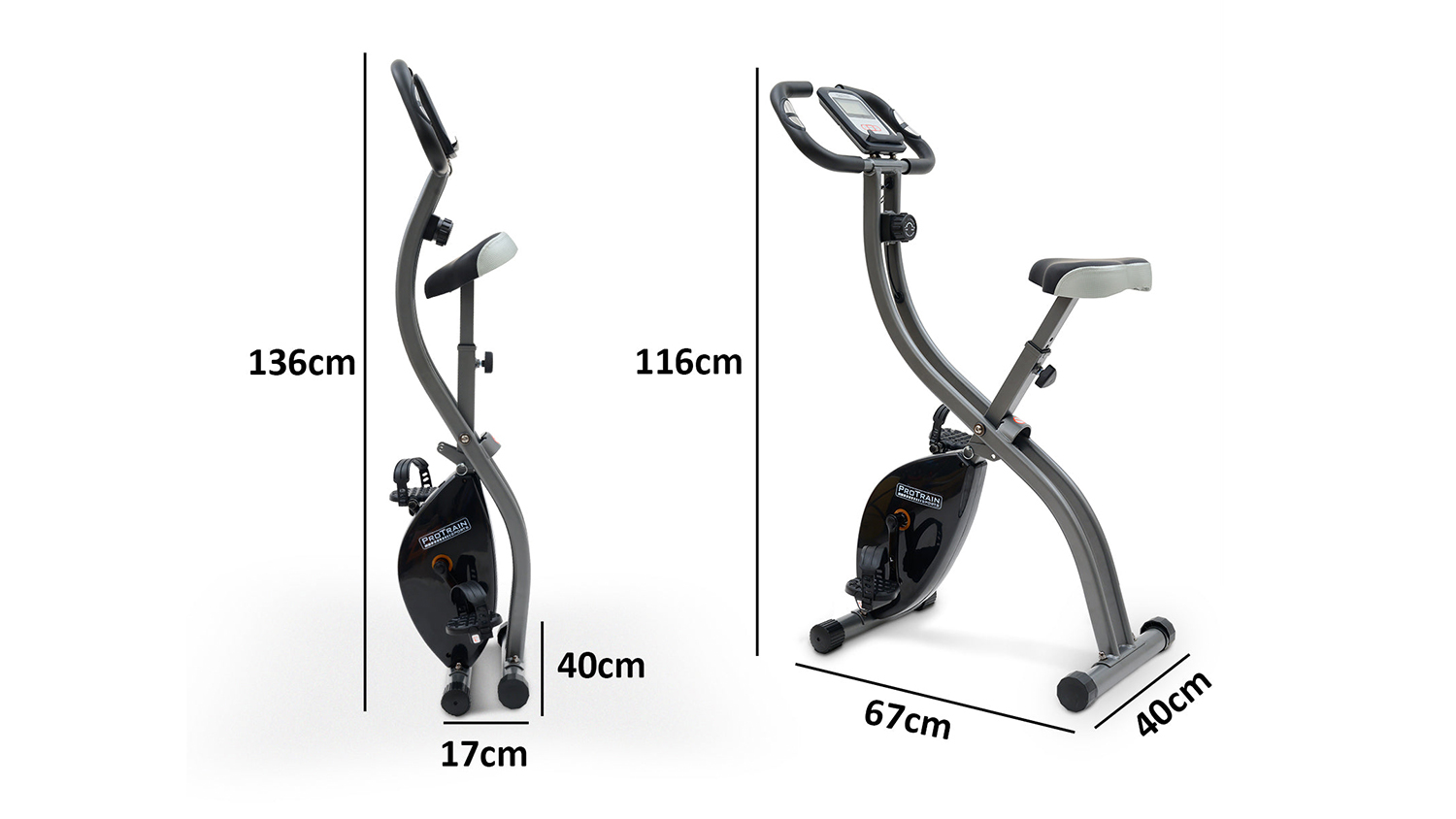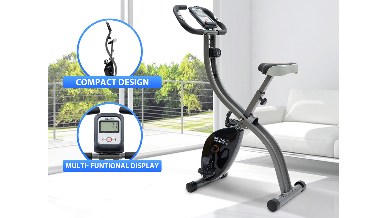Elevate your fitness journey with the ProTrain X-Bike Folding Recumbent Bike with Silent Magnetic System! This space-saving equipment boasts eight adjustable mechanical resistance levels, offering you a versatile and efficient home cardio solution. It can also fold up easily for storage, so you can save space in your home gym. Plus, this X-Bike has an LCD monitor, enabling you to keep track of your progress with ease.