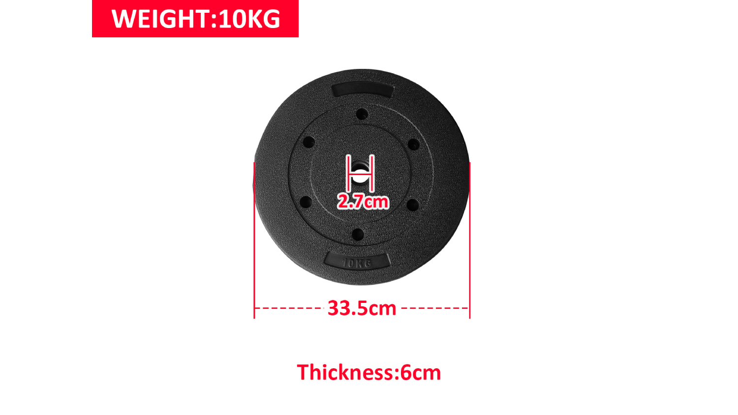 Meet your workout partner, the PROTRAIN Cement Weight Plates! Designed to impress and built to last, these 10kg weight plates are a must-have for anyone serious about their fitness journey. It allows you to tailor your exercises to target specific muscle groups, making them ideal for full-body workouts, muscle gains, and weight management.