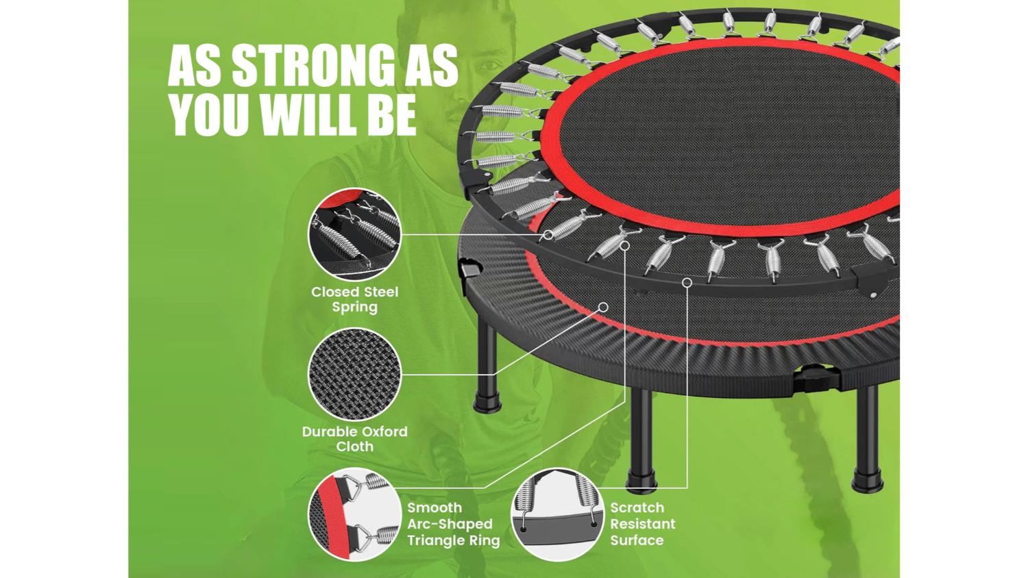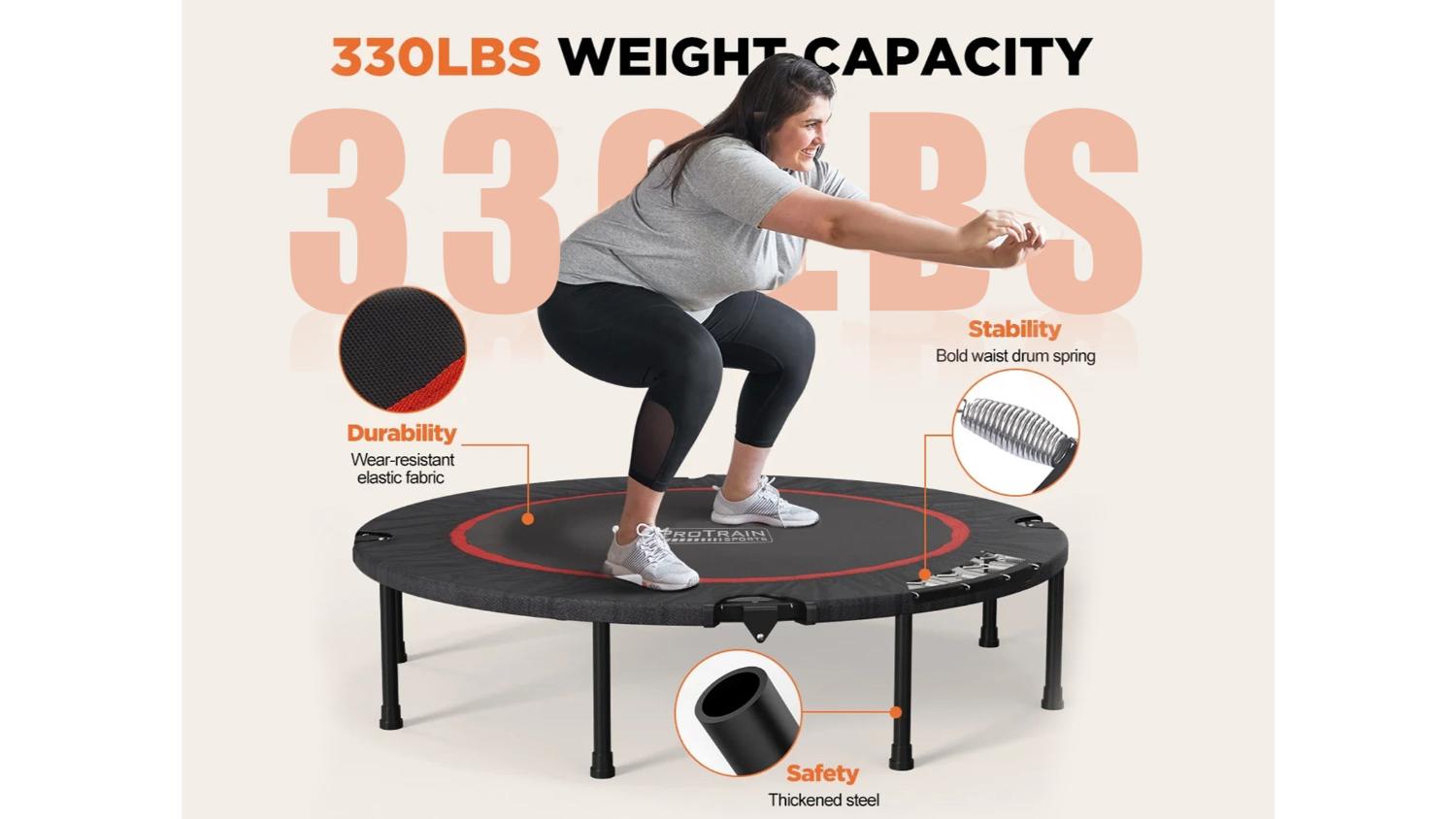 The TSB Living Mini Fitness Trampoline 40A makes exercise fun and effective. This space-saving rebounder fits perfectly in small home gyms and offers a joint-friendly, cardio-pumping workout. With a high-elastic jumping mat, strong bungee cords, and a robust frame that supports up to 330 lbs, it’s built for performance and safety. Plus, it’s a thoughtful gift for Mother’s Day, birthdays, or the holidays!