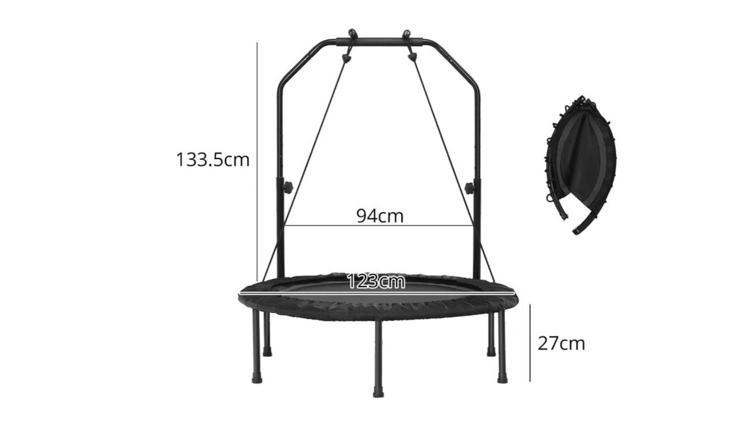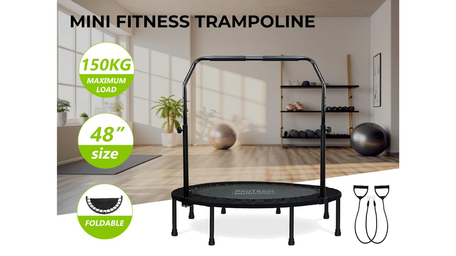 Turn any room into a home gym with the TSB Living Mini Fitness Trampoline! This foldable, compact rebounder offers a high-energy workout without taking up too much space. The 4-level adjustable handlebar and two included resistance bands let you customise your routine, while the durable metal frame and high-elastic jumping mat ensure stability and performance.