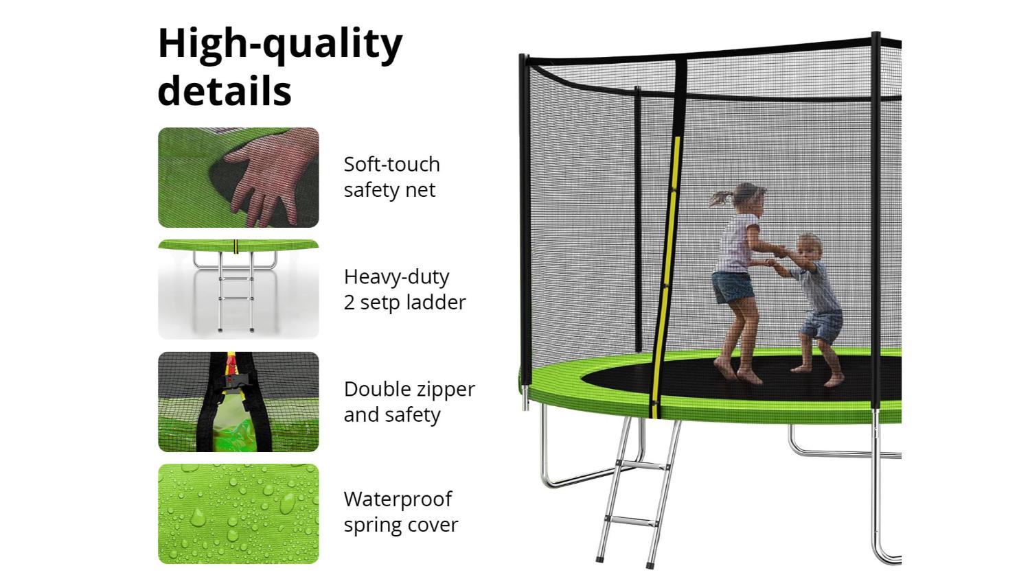 TSB Living Trampoline Outside Safety Net with Ladder 2.4m - Lime