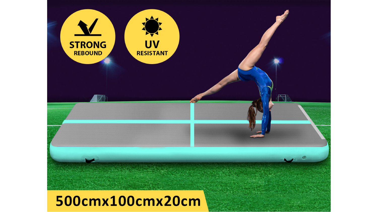 Designed as the ultimate training and competition landing platform, the TSB Living Inflatable Gymnastics Air Track 5 x 1m is a game-changer for gymnastics, cheerleading, martial arts, and school sports. Crafted from durable 1000-denier double-wall PVC fabric, this product features an anti-slip and wear-resistant surface that significantly reduces impact. With a thickness of 20 cm, it offers superior bounce and exceptional versatility.