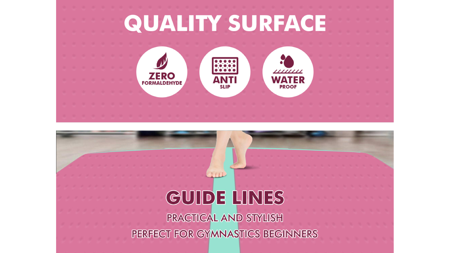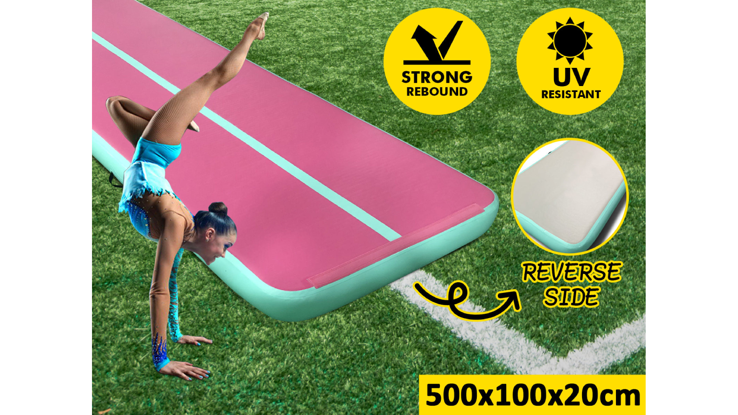 TSB Living Inflatable Gymnastics Air Track 5 x 1m - Pink/Green